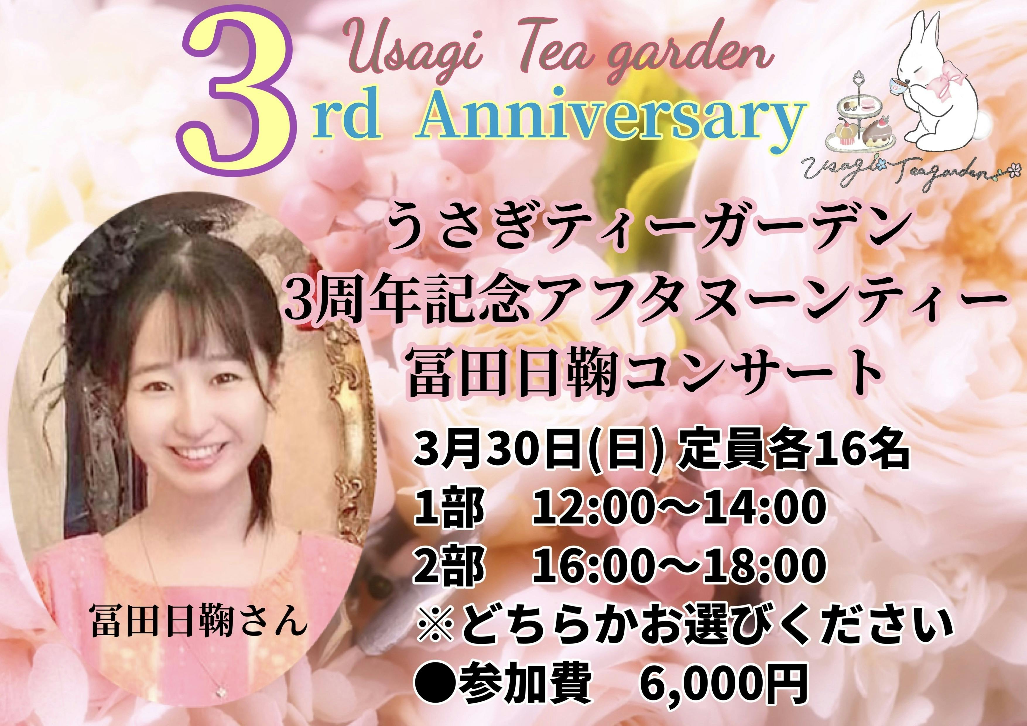 2025/02/22 18:05みなさまこんにちは♪うさぎティーガーデンのTaeです。みなさまの温かい応援とご支援のおかげで、うさぎティーガーデンは無事、2月17日に3周年を迎えることが出来ました!心より感謝申し上げます。3月30日(日)に、3周年記念イベントを開催いたします!ミュージカル「ドロシー」のヒロイン、ドロシーの衣装を着た日鞠さん♪1周年記念イベントでも、素晴らしい歌声を披露してかくださった、ミュージカル俳優の冨田日鞠さんのコンサートと、スペシャルアフタヌーンティーで3周年をお祝いいたします♪ぜひご一緒に乾杯していただけましたら嬉しいです!3周年記念イベントの詳細はこちらをご覧ください。ハロウィンパーティーコンサートにて冨田日鞠6歳より合唱団に所属し、13歳で、イタリアの世界最古の屋内劇場、世界遺産のテアトロ・オリンピコにて合唱を披露。主な出演作:市民ミュージカル「眠れる森の美女」主演、ミュージカル座「ひめゆり」ちよ役、他多数。洗足学園音楽大学ミュージカル舞台に1年生ながら2公演連続主演を務める。次の主演出演も決定している。第7回全国英語歌唱コンクール全国第3位。その他北関東1位など、コンクール多数上位入賞。洗足学園音楽大学ミュージカル「ドロシー」で主役ドロシーを演じています!初日、私も観てきました!日鞠さんの素晴らしい歌声と演技に、会場中がうっとりと聴き惚れていました!日鞠さんの歌声は、いつ聴いても心が洗われます!ドロシー公演後の日鞠さんと♡お店のあとに駆けつけて観ることが出来ました♪最高でした!3月20日(日)精一杯おもてなしさせていただきます!ぜひみなさまのご参加お待ちしております!3周年記念イベント詳細はこちらリターンの準備も、着々と進めております。どうぞ今後とも、よろしくお願いいたします。うさぎティーガーデンTae もっと見る