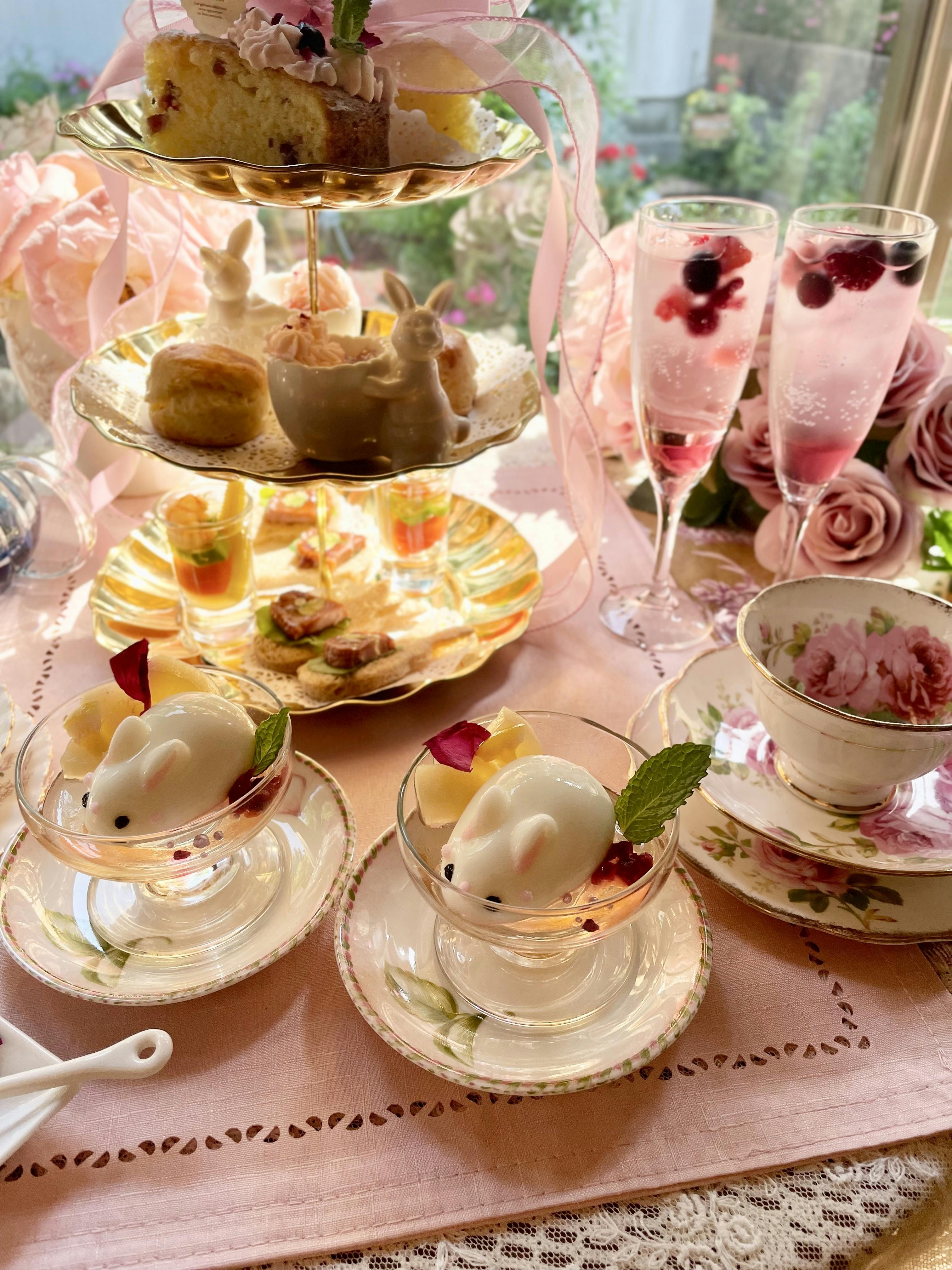うさぎ、アフタヌーンティーをテーマに、大人可愛い世界を展開してゆきます。