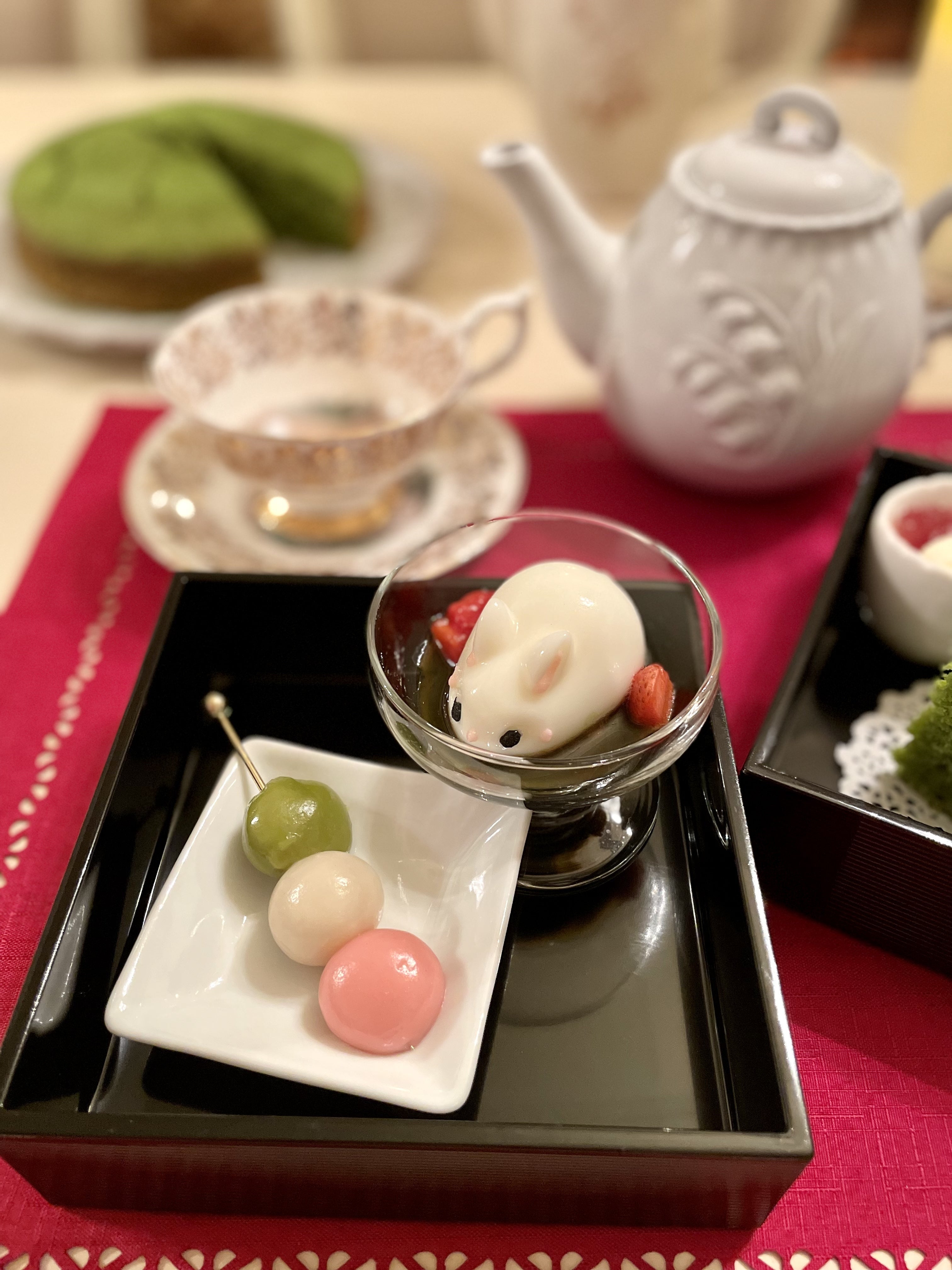 手作り白玉3色団子や抹茶のヴィクトリアケーキなど、和テイストのアフタヌーンティー