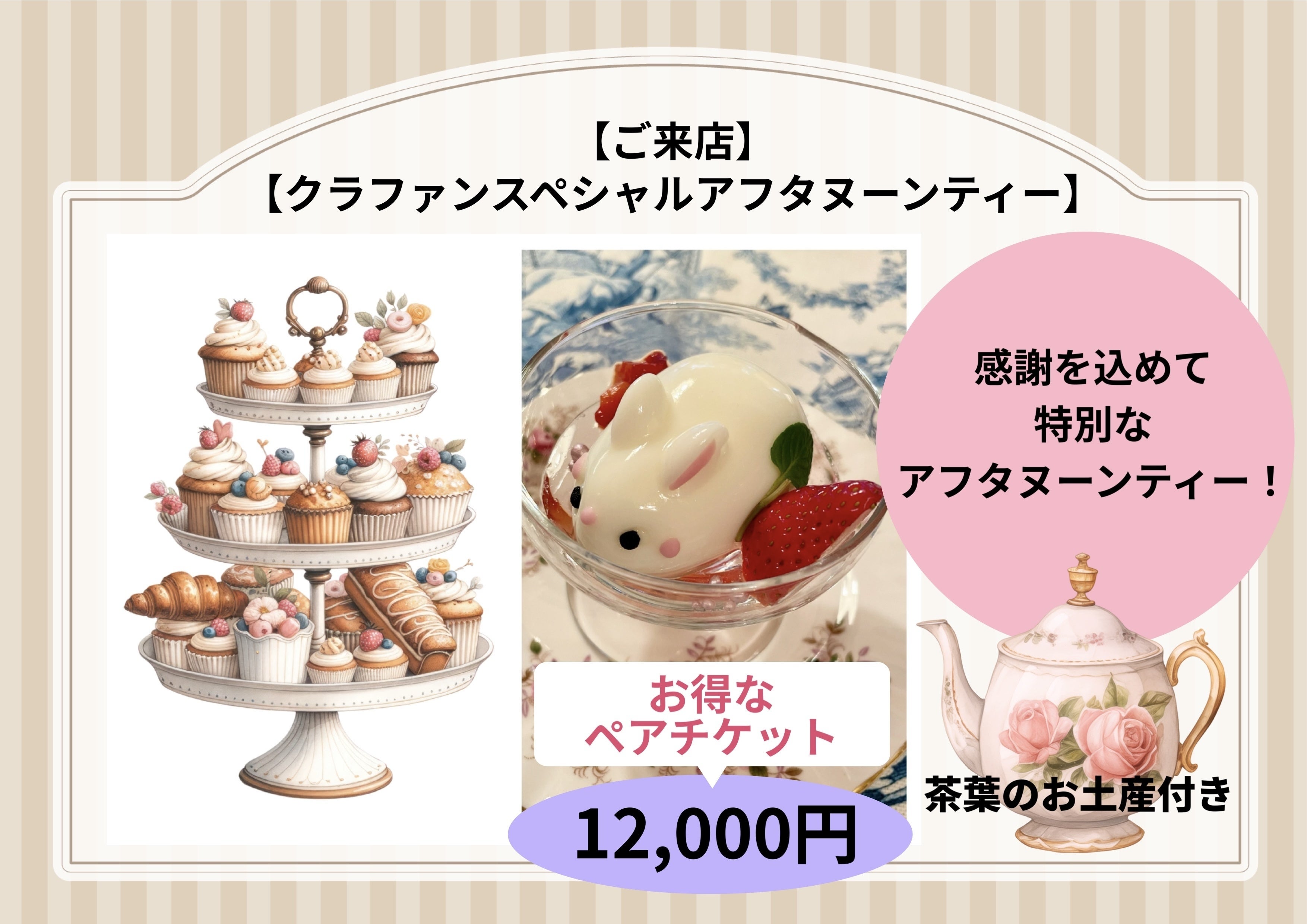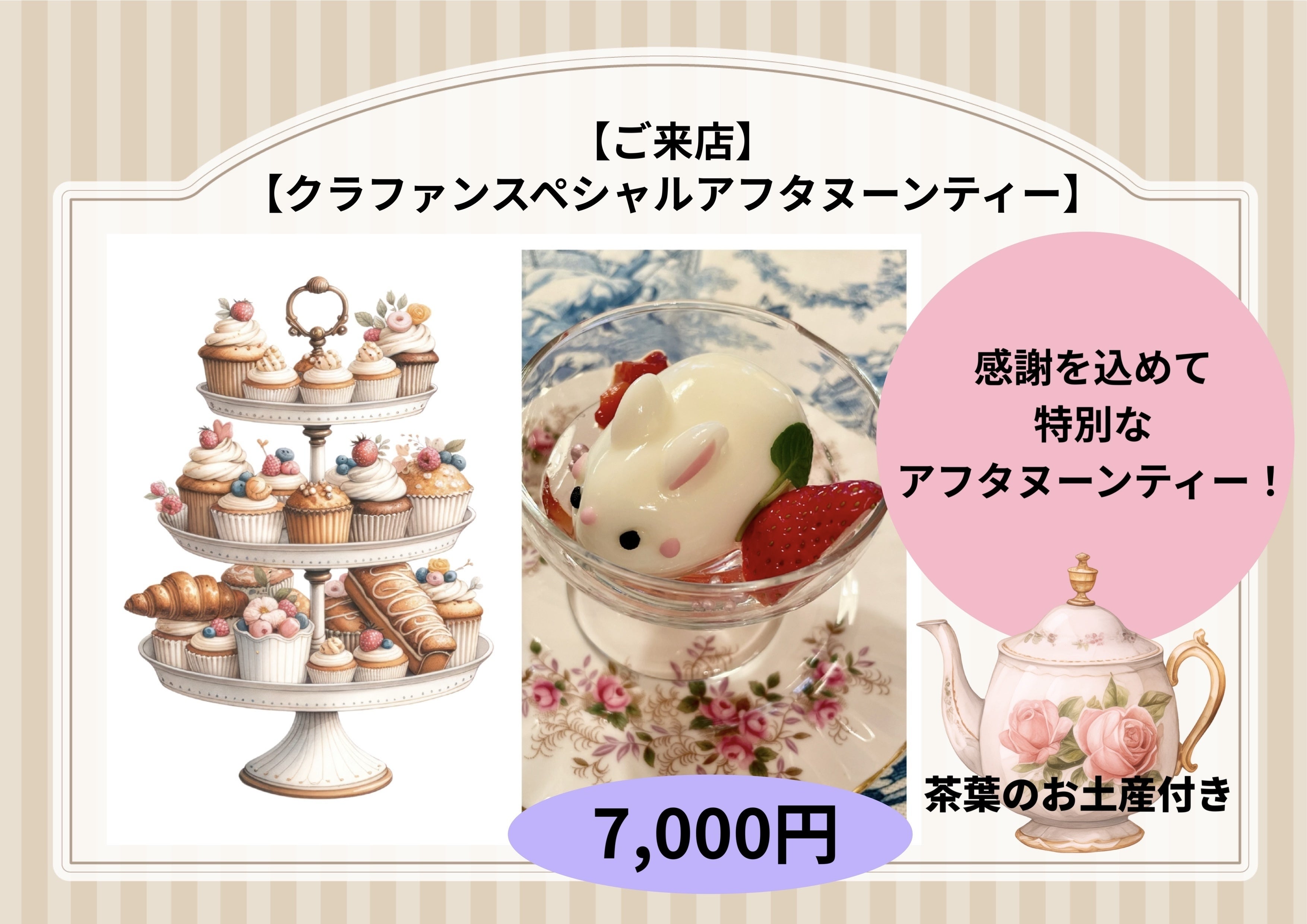 「来て良かった」とご満足していただけるように、精一杯、心を込めてアフタヌーンティーをご用意しております。リターンにも、ご用意している「クラファンスペシャルアフタヌーンティー」も、心を込めてお作りいたします。人生をかけた挑戦!このプロジェクトも残り5日となりました。