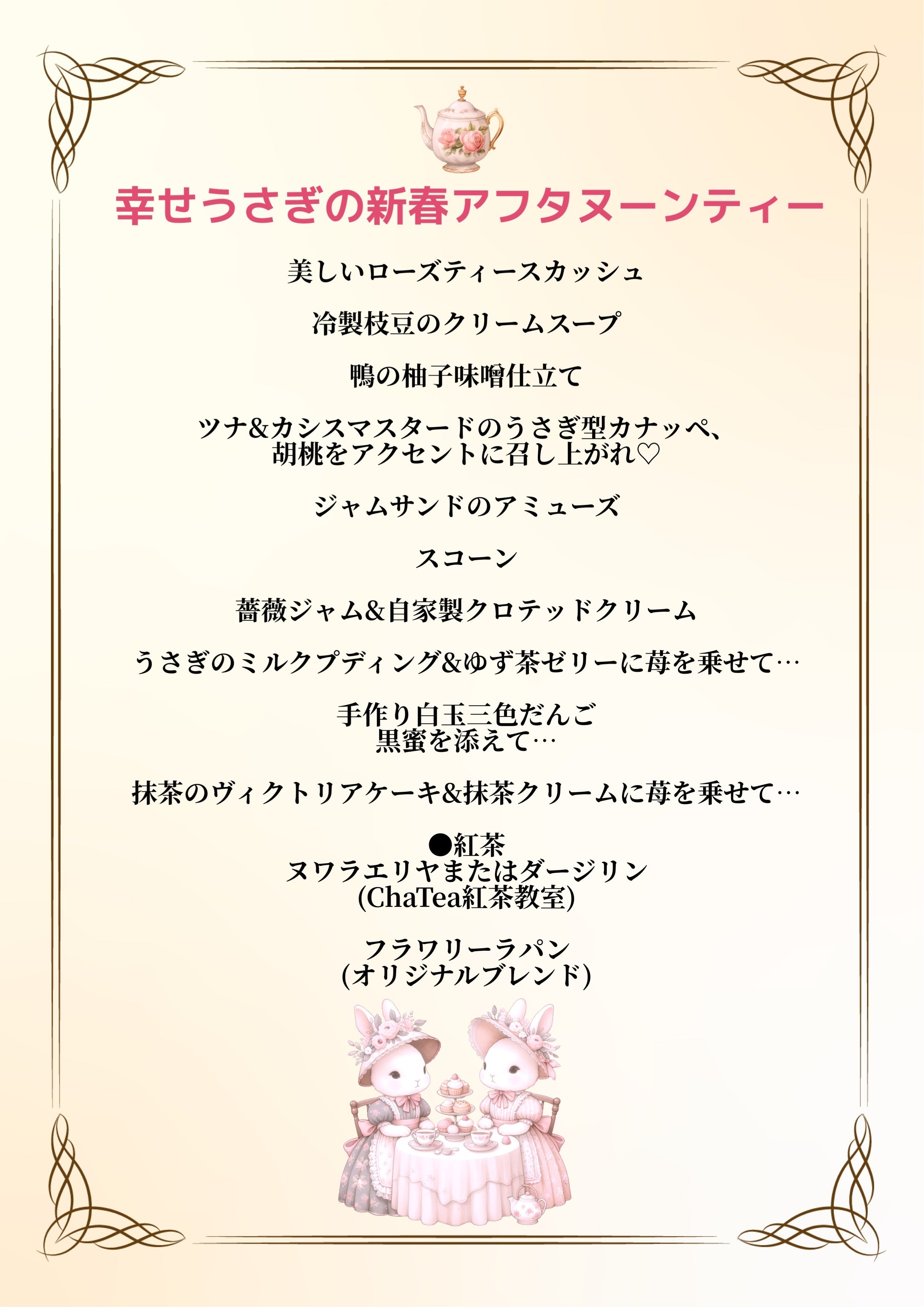 「幸せうさぎの新春アフタヌーンティー」をみなさまで楽しんでいただきました。