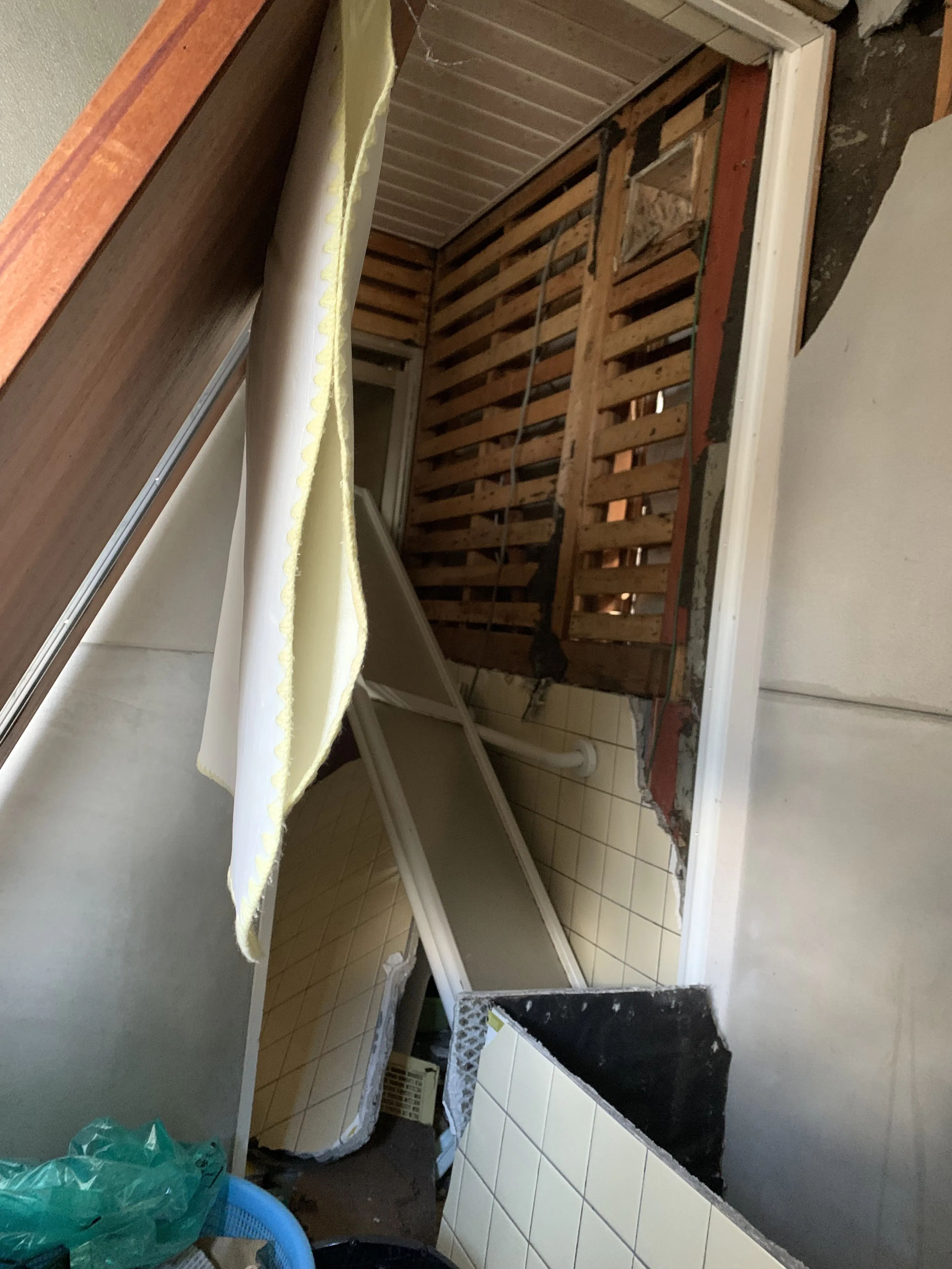 実家のお風呂場はタイルが剥がれて外から光が差し込んでいました復興にも時間がかかりそうで、もう5月になりますが、珠洲市の実家は家も地震の時のまま手付かずの状態です。
