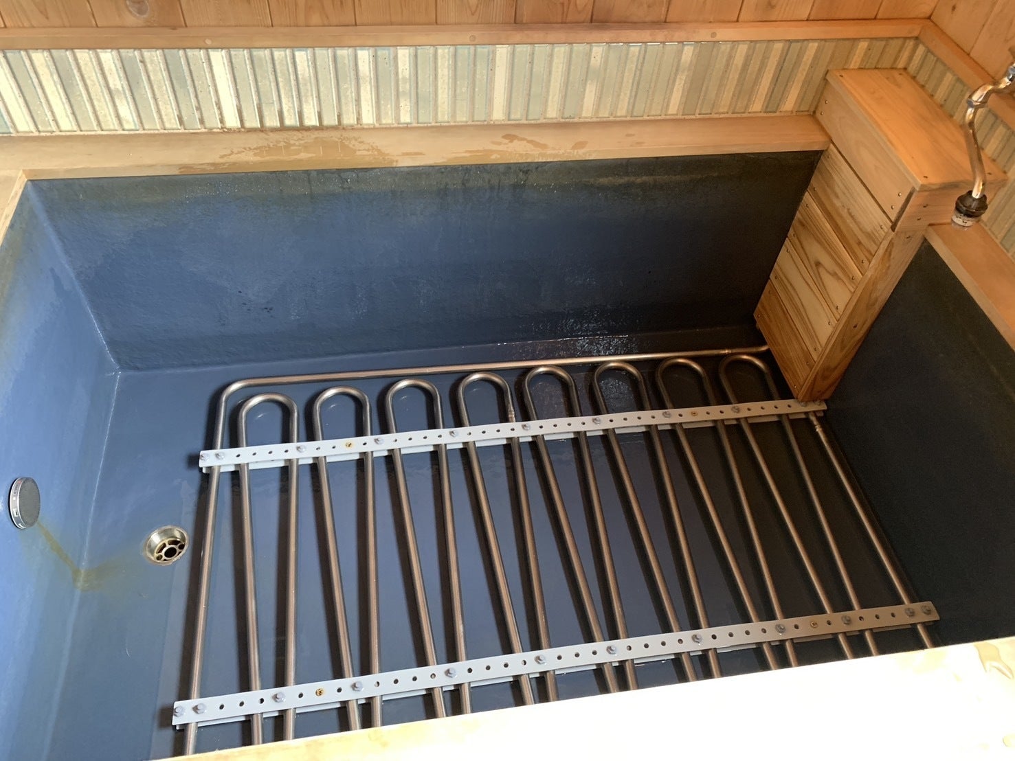 2025/06/15 16:20続いて、お風呂の底に保温のための「チタンコイル」を設置しました。今まではすぐに緩くなってしまうお風呂に苦労していましたが、これでいつでもあっつあつのお風呂に入れます。実際に入ってみましたが、水を足さないと入れないくらい熱々で、嬉しい悲鳴でした。ご支援いただいた皆様も、お風呂好きの方も、是非冷泉小屋のお風呂に入りにきて下さい。お待ちしております!! もっと見る