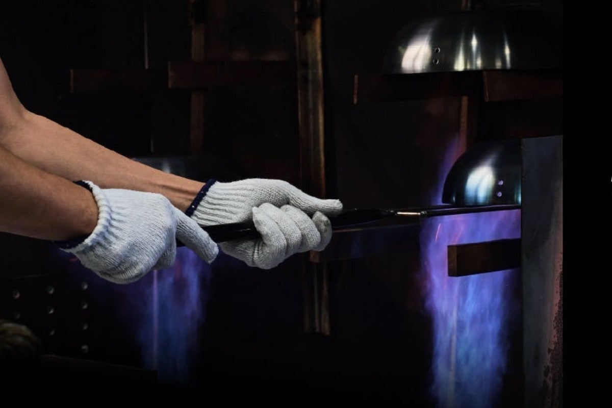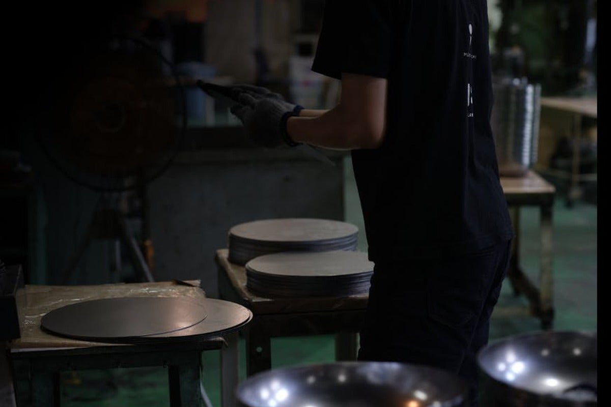 しかし、へら絞り加工は熟練した職人の手によってしか正確に実行することはできません。精密な手仕事によって、フライパンの形状、厚み、そして最終的な重量が決定されます。