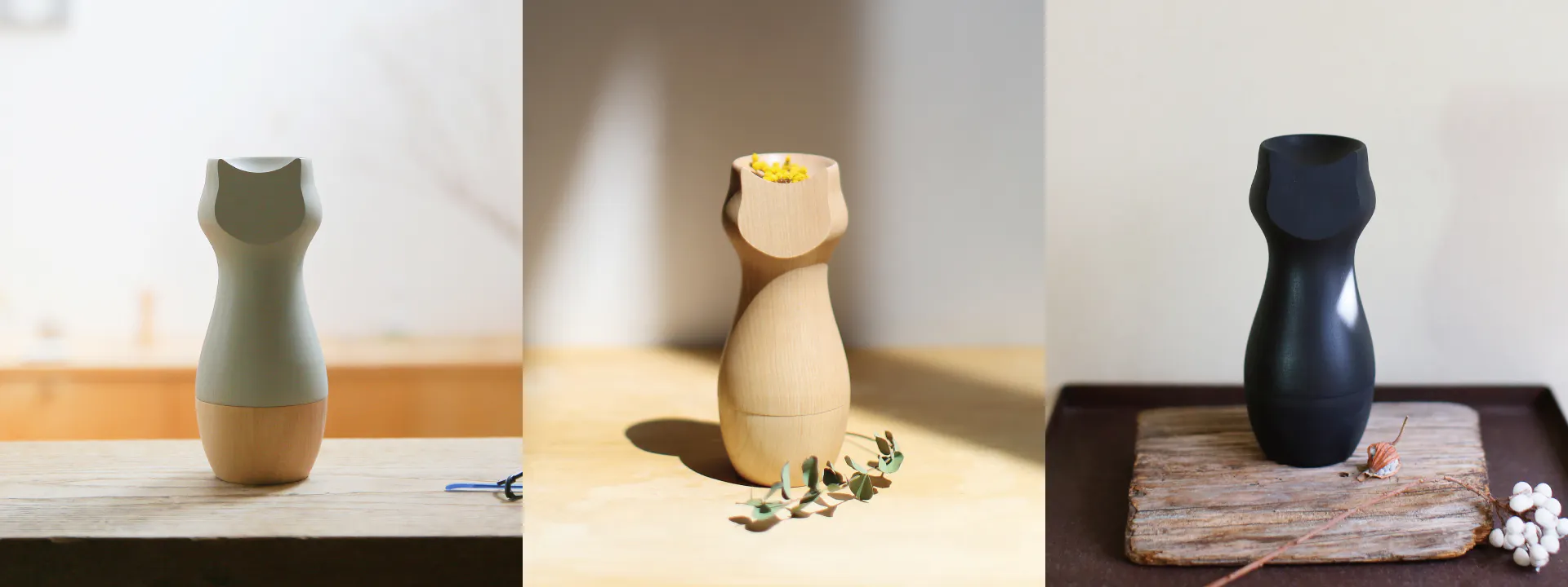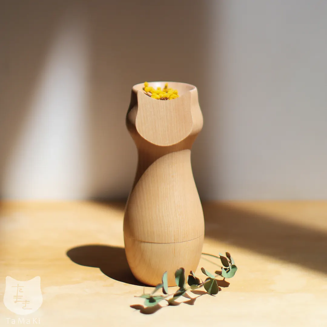 さまざまな個性を持ったネコたちの魂を受け止める「器」にふさわしいシンプルなフォルムは置く場所を選ばず、さまざま空間に馴染みます。