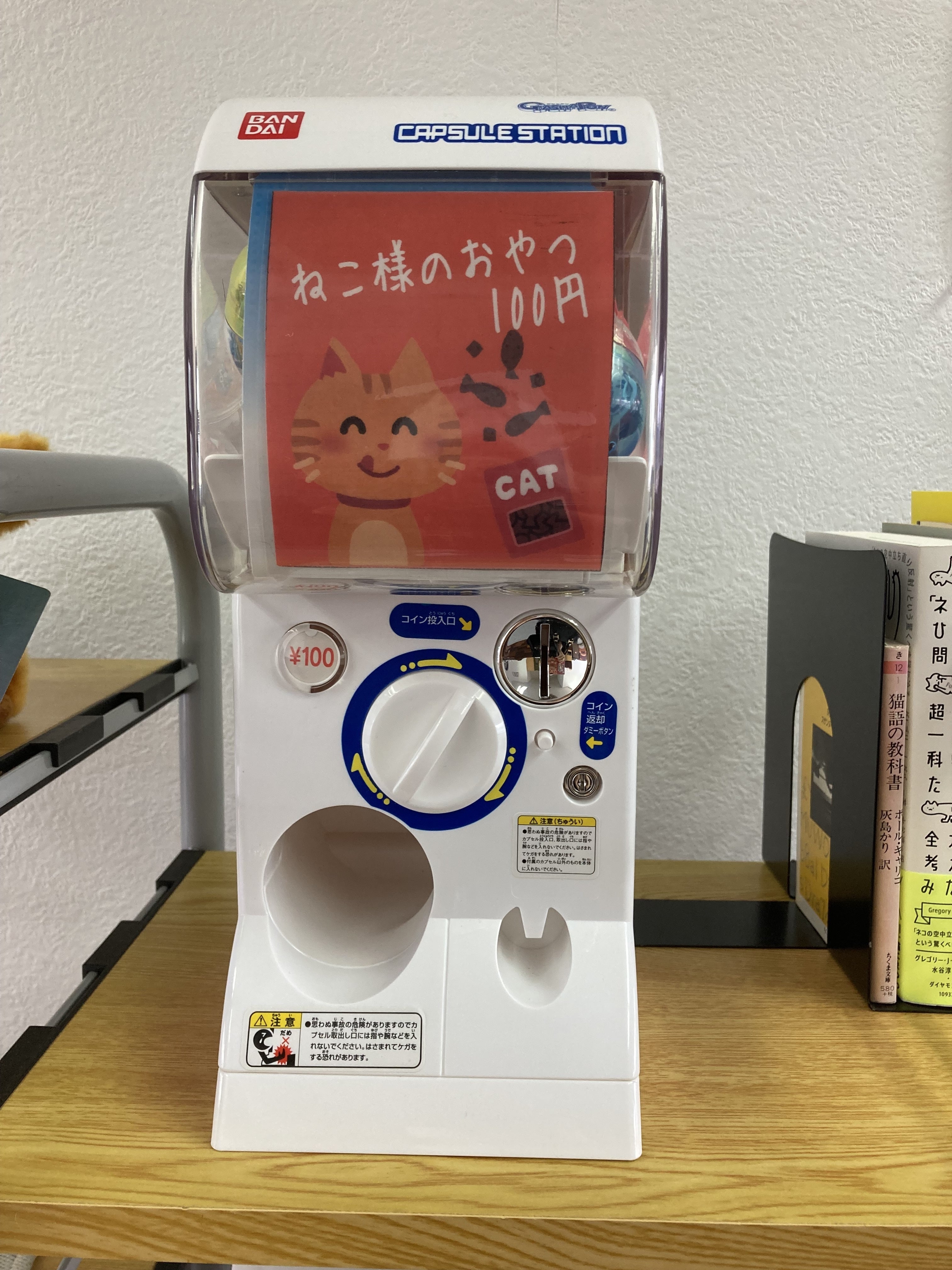 1day alice様からガチャガチャの機械を頂きましたおやつあげたいけどなかなか恥ずかしくて店員さんに声掛けれないよって方でも猫ちゃんにおやつあげれますねฅ(=^・ﻌ・^=)ฅ( ^ ̳ᴗ ̫ ᴗ ̳^)