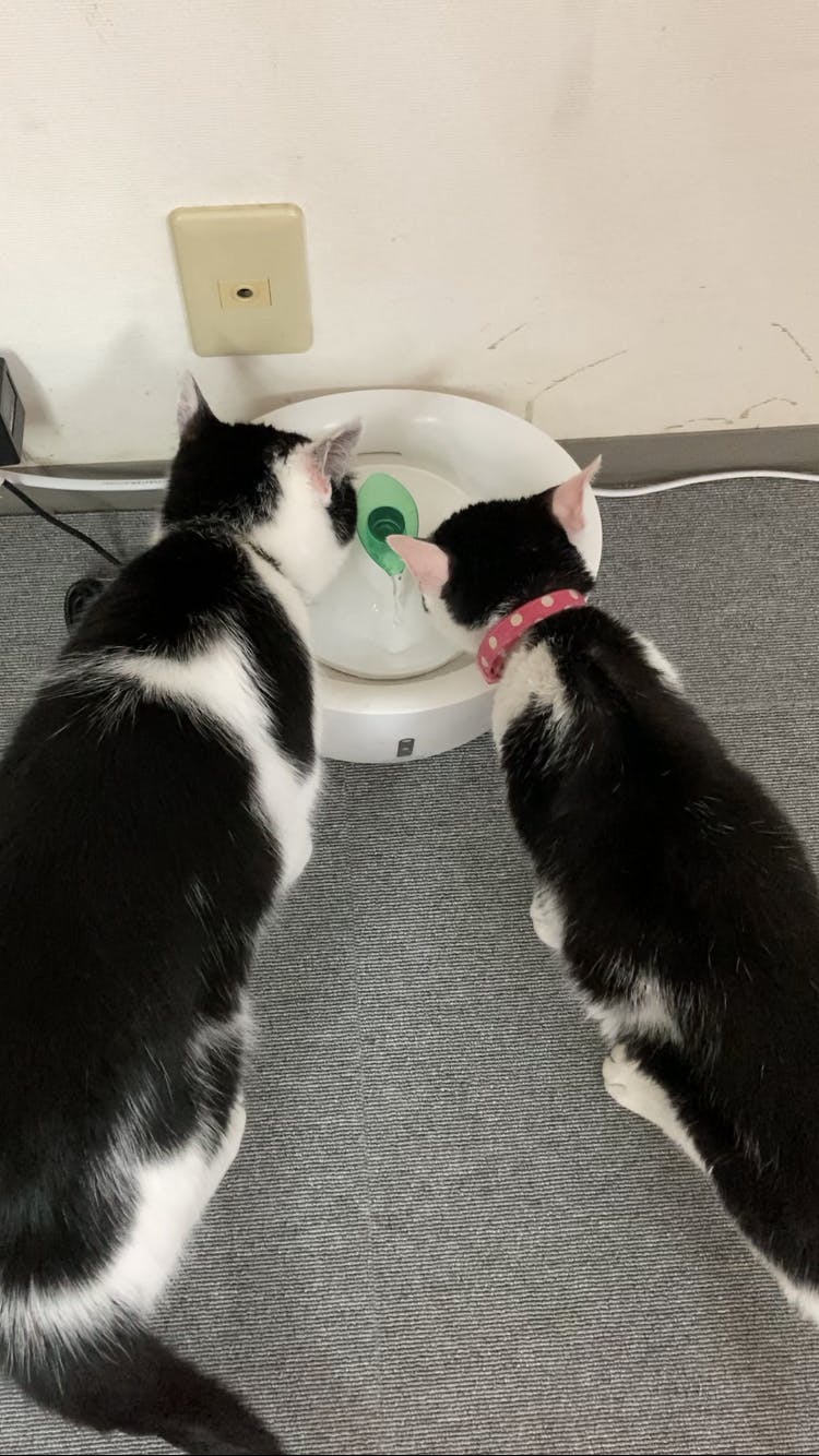 ひだりちゃん(右側)とまろ君(左側)が仲良く一緒にお水を飲まれていました
