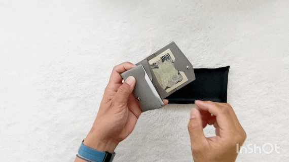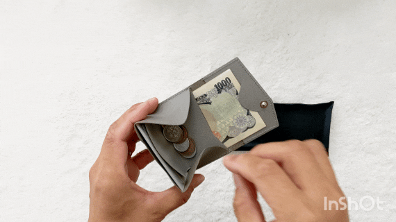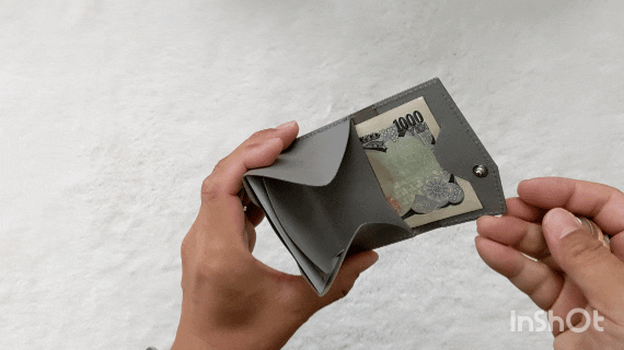 いくらコンパクトな財布でもこの映像のように、お札を一枚ずつ三つ折りにしないと収納できない財布ならわずらわしくてスムーズには支払いができません。