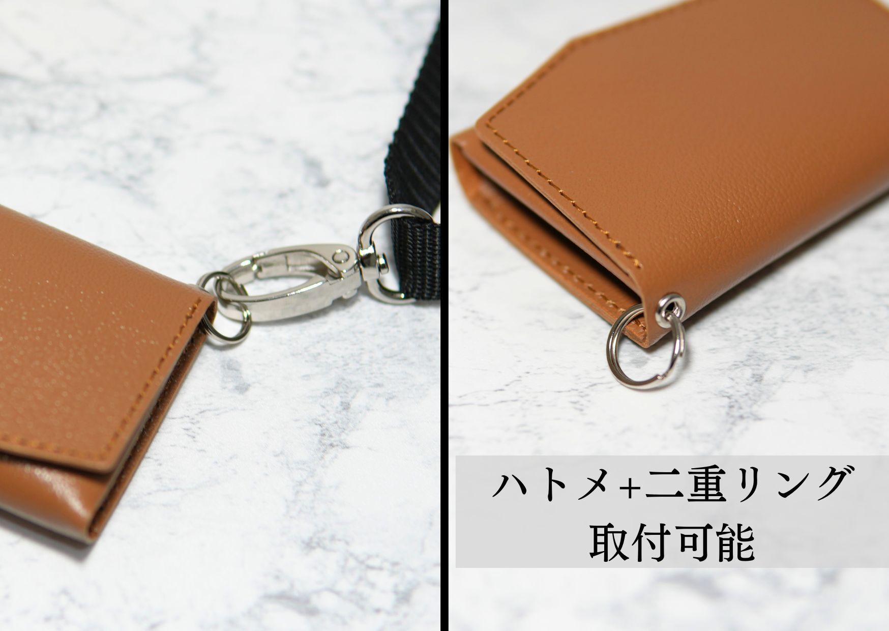 キーを取り付けたり、ショルダーストラップに取り付けたりアレンジしてお使いいただけます。CAMPFIREでは、取り付けサービスとさせていただきます。購入ページで「ハトメ+2重リング・有り」をお選び下さい。