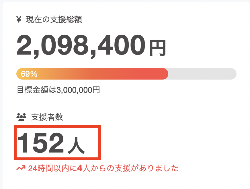 残りわずか3時間となりました!ここまで来ると終わってしまうのが寂しくもあります。ただ終わりは始まりでもあり、ご支援者の皆様のご期待に応えられるよう、努力して参ります!今後の活動報告はご支援頂いた方限定で送らせて頂きます。クレジットカードの認証が上手くいかないこともあるようですので、まだリターンで迷っている方はお早めに!これが最後のチャンスです!!