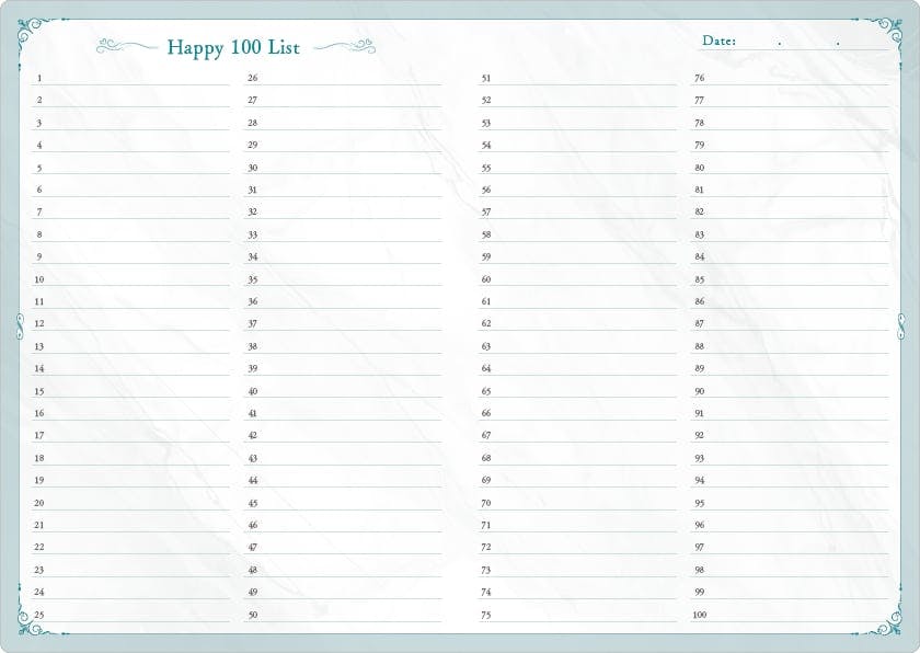 自分が本当にハッピーを感じるのはどういう時?どんなこと?を思い出すために(100の)あなたの本当の願望を、時間制限の中でリストアップします。
