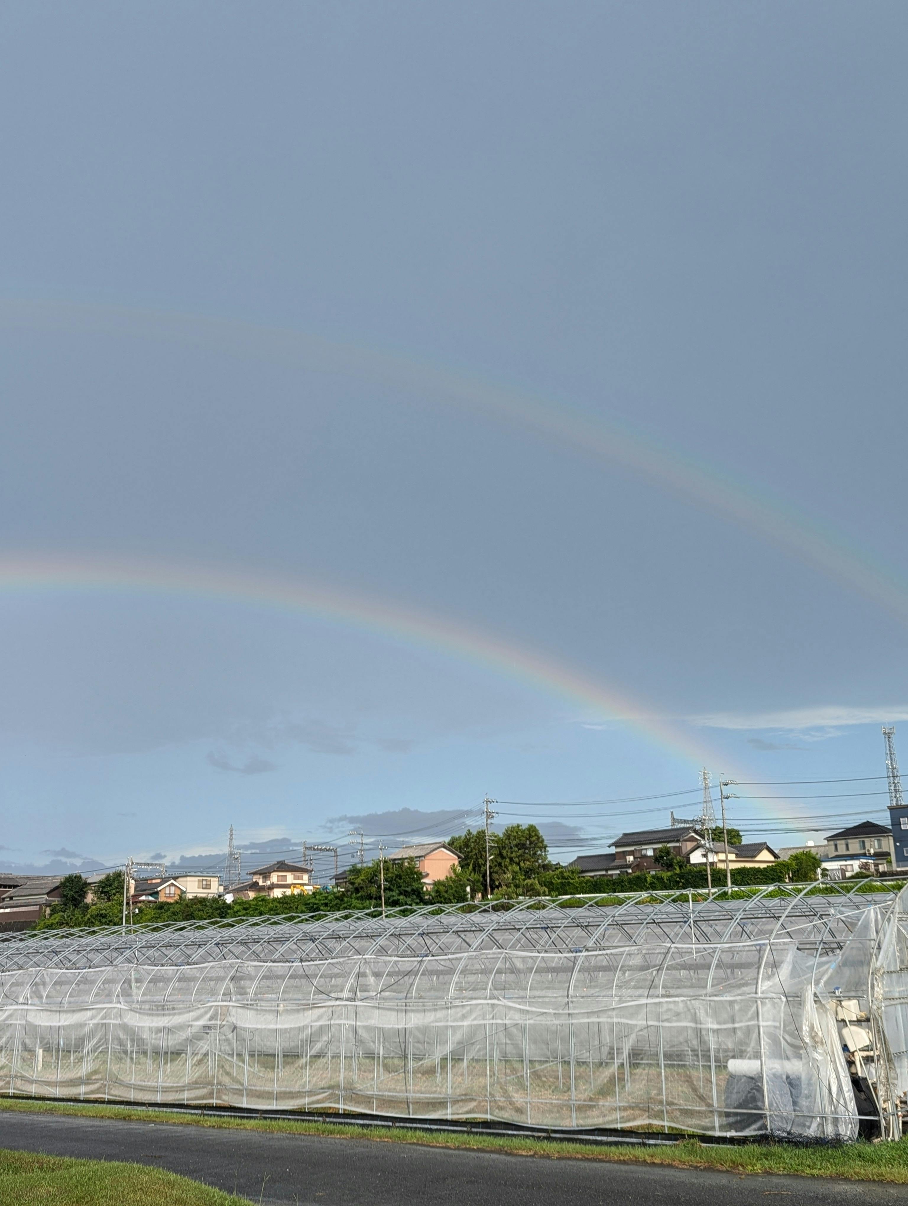 2024/07/29 06:14普段はサングラスをしていても、眼がヒリヒリするのであまり空を見上げることはないのですが、激しい雷雨のあと外に出てみると、二重の虹が架かっていました。そしてなんとその晩、お陰様でネクストゴールを達成することができました。本当にありがとうございます。昨日、スイカ師匠が来てくれて、今作(夏)の反省点、次作(冬)の播種計画について話した後、いよいよ春作の段取りを相談させていただきました。スイカ師匠と皆さんのお力添えのもとで挑戦できることをとても嬉しく思っています。残すところあと2日となりました。一人でも多くの方に知っていただけるように、最後まで頑張ります!応援よろしくお願い致します。 もっと見る