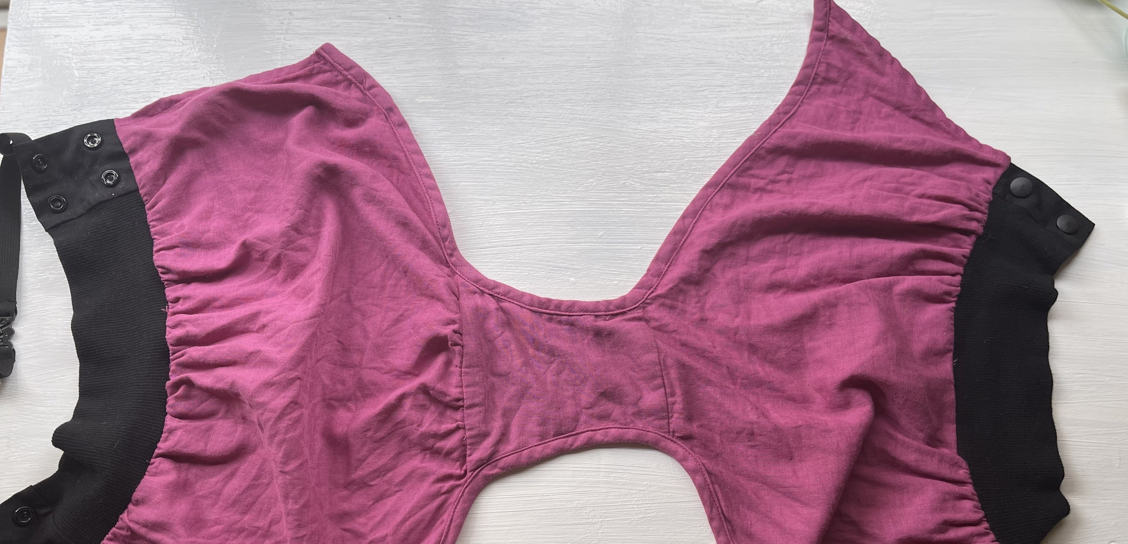 …スナップボタンの並べ方、お腹のゴムの長さ、ウエストリブの縦幅の長さ、太ももが見えないようにデザインされた前見頃の脇部分の斜めの角度、マチ部分の長さ、ギャザーの寄せ位置などなど、細かくあげたら何ページになるだろうというほど、細かく調整しました。