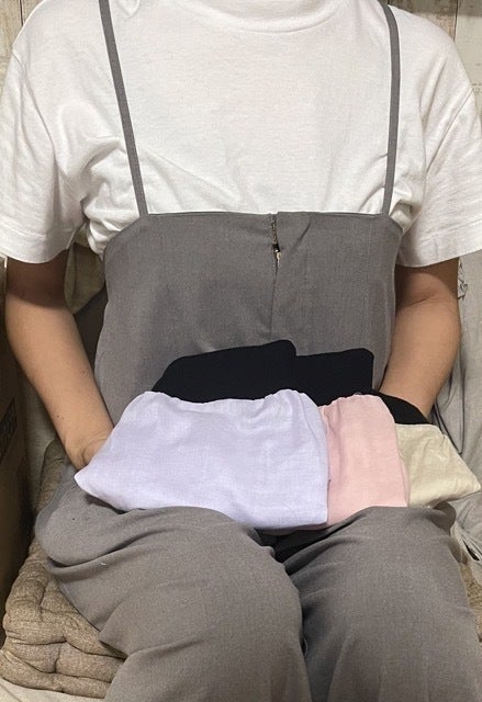 「包みパンつ」はまさに体を包んでいく様を表した名前です。柔らかな生地とウエストのリブニット生地で身体の一番温めたい場所を包む、その温かさは、心も包むのではないか…