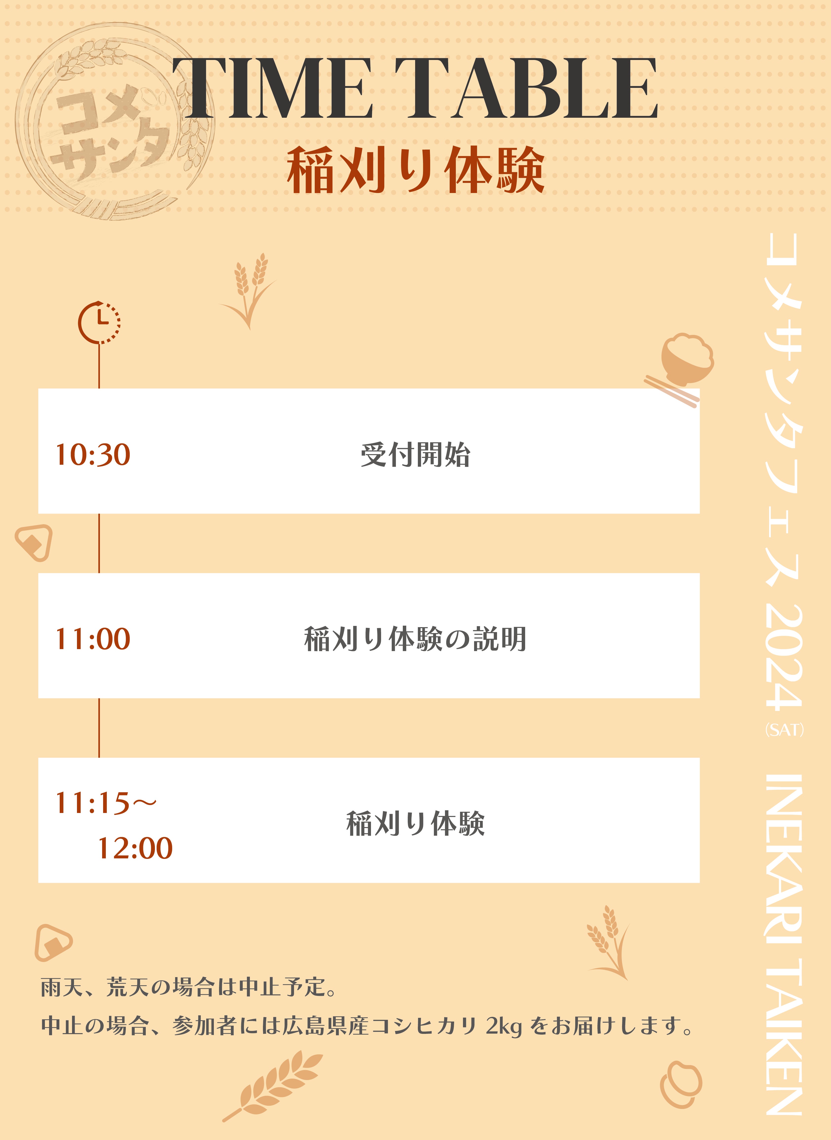 『コメサンタフェス』は、稲刈り体験と収穫祭の2部構成です。