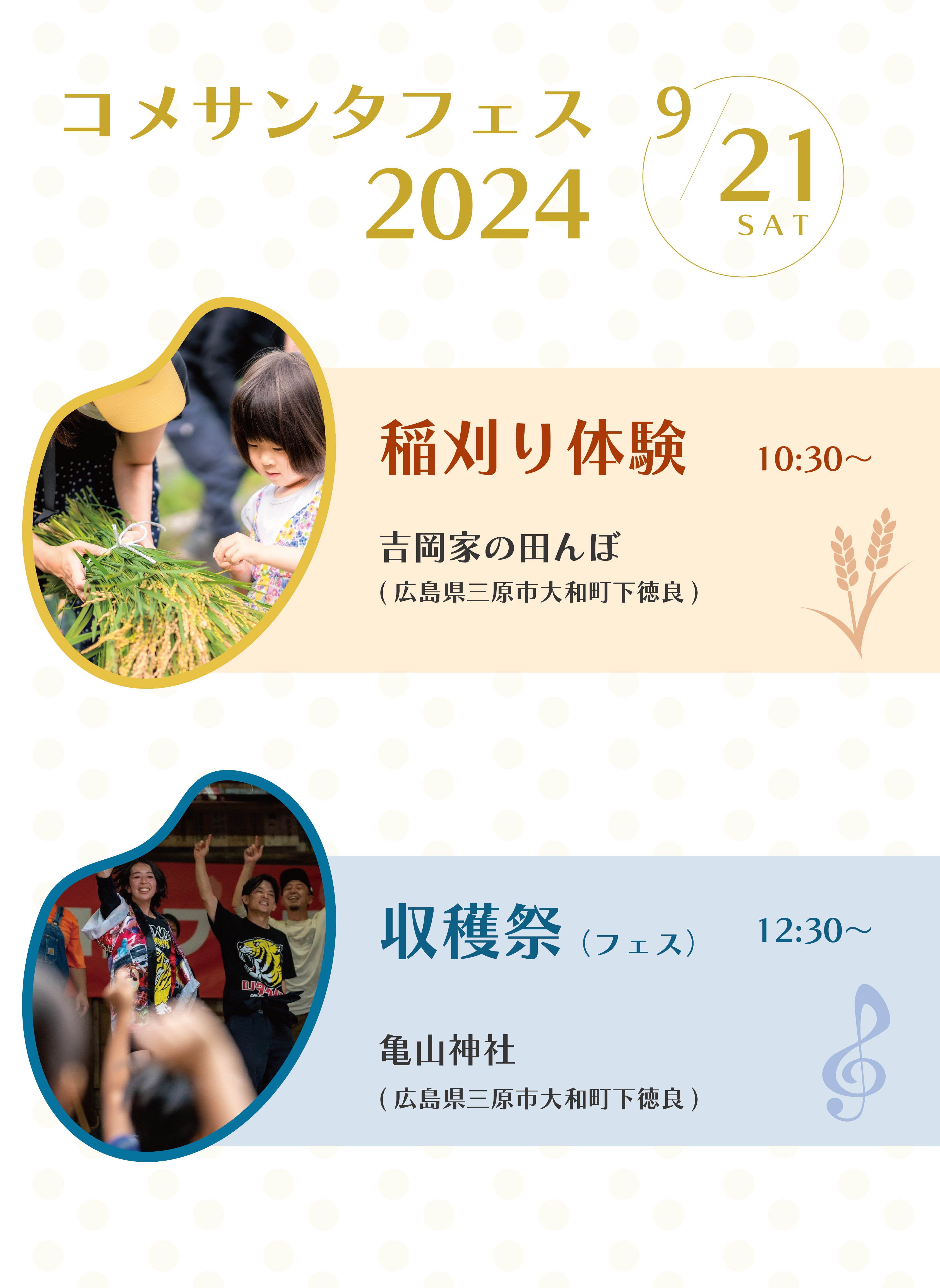 『コメサンタフェス』は、稲刈り体験と音楽や出店を楽しむ収穫祭を組み合わせたイベントです。