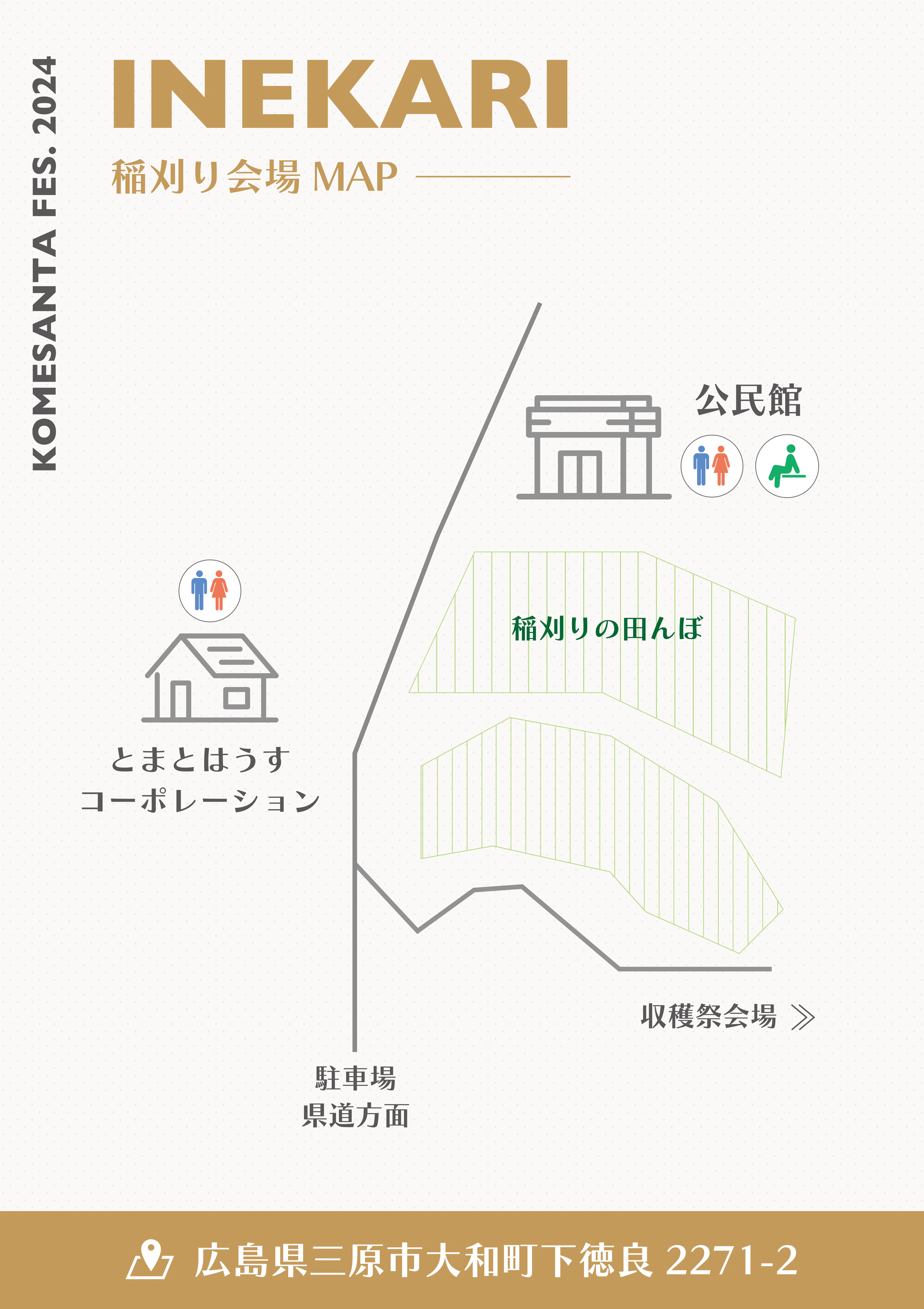 ※稲刈り会場、お祭り会場(亀山神社)、には隣接する駐車場はございません。