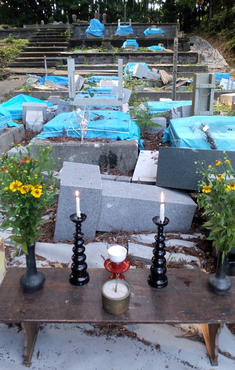 お墓までの道が崩れて行けない方もいます。お盆なのに草が生え放題になっている、雨ざらしになっていると心を痛めている方もおられます。