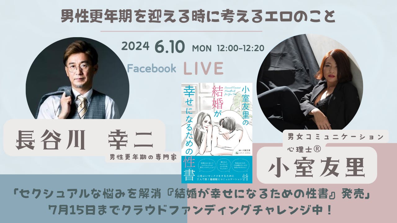 今回の活動報告では、ゲストで登場していただいた日本一、男性更年期に詳しい経営者、男性更年期の専門家・長谷川幸二さんさんとのLIVE配信をYOUTUBEでお届けいたします。