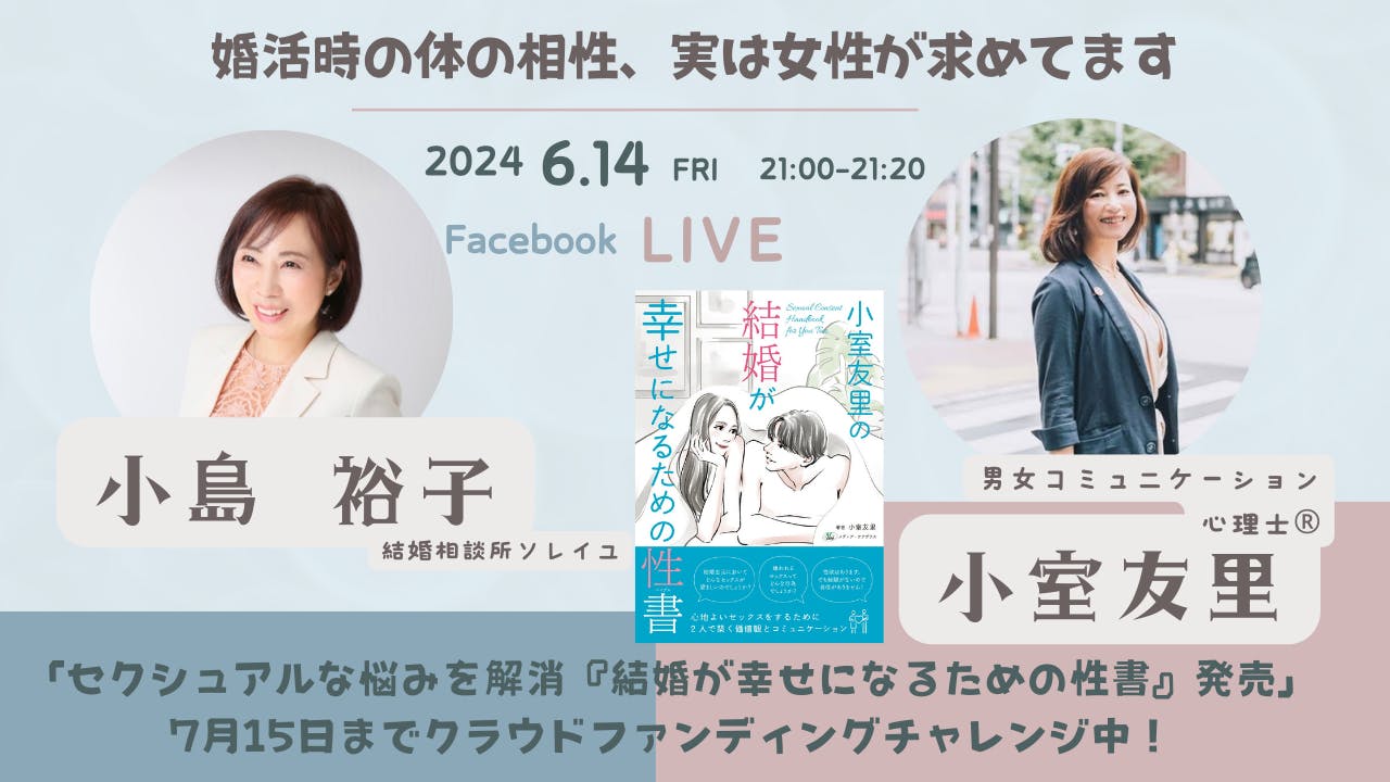 今回の活動報告では、ゲストで登場していただいた結婚相談所ソレイユの小島裕子さんとのLIVE配信をYOUTUBEでお届けいたします。