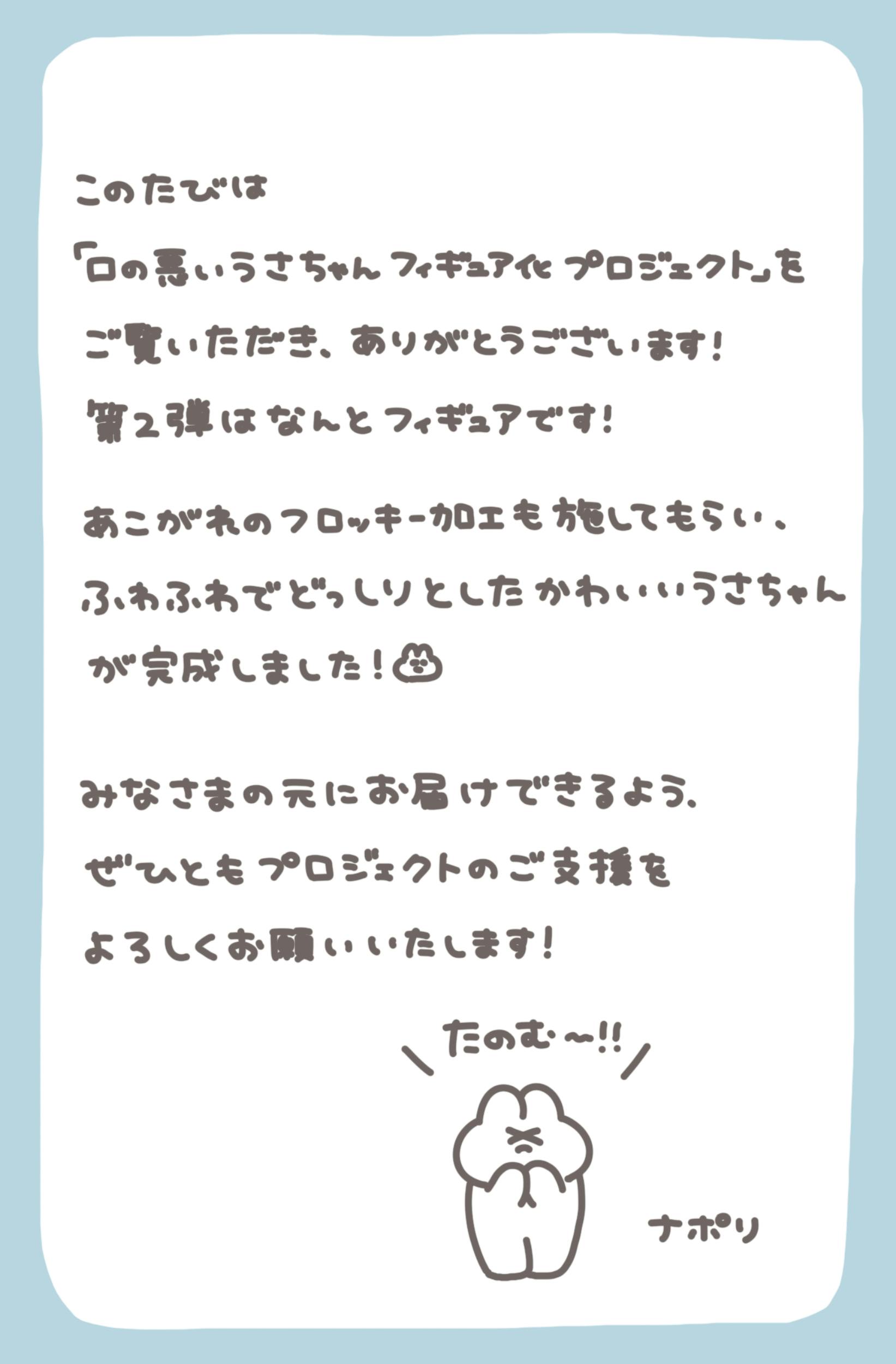 2024/09/06 10:36【ストレッチゴール190%達成いたしました!!】Creationスタッフです。口の悪いうさちゃんフィギュア化プロジェクトへのご支援ありがとうございます!皆様の応援のお陰で支援者様全員に缶バッジのプレゼントが決定しました!!もちろんこれからご支援される方も対象となります♪引き続き応援よろしくお願いします! もっと見る