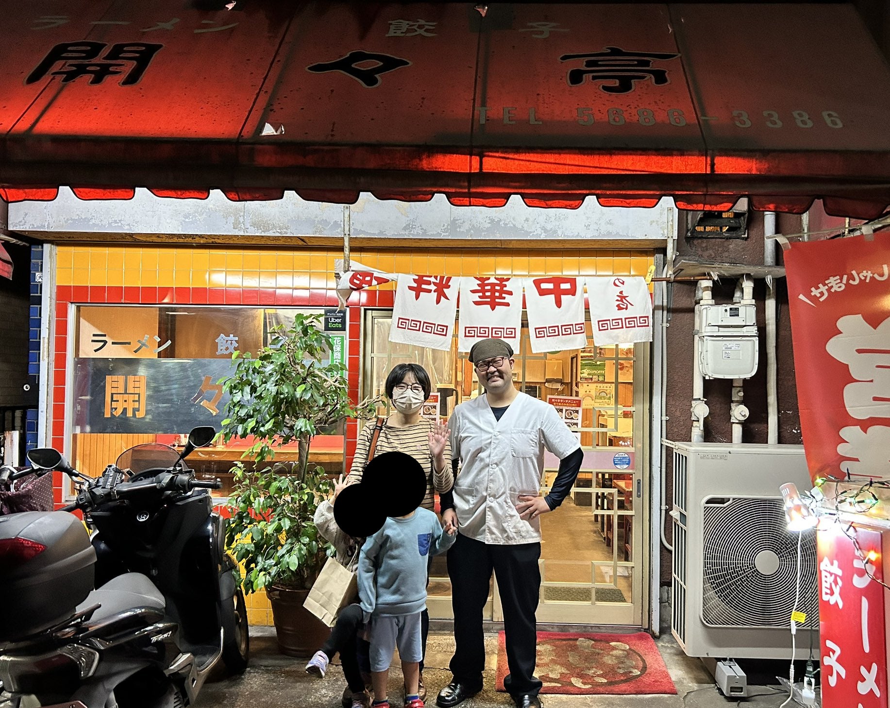 ゴリラ豪雨が店主を務めた「開々亭」での思い出の一枚。(家族写真を友人が撮影してくれました。)