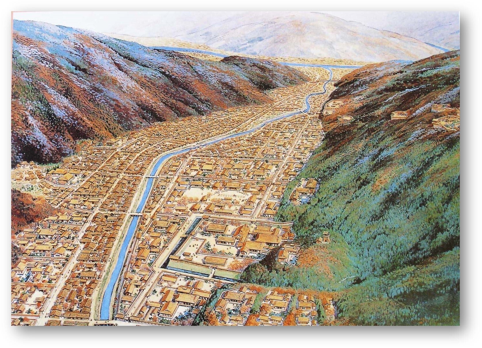↑ 戦国時代一万人が暮らした一乗谷城下町(イメージ)