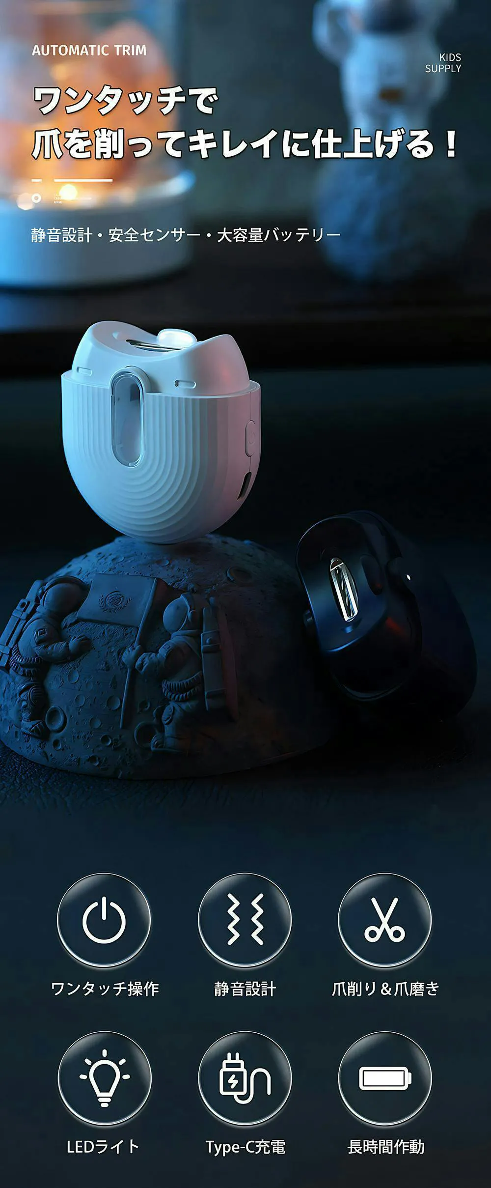 また、眠っているお子様の爪を、音を気にせずにお手入れできます。