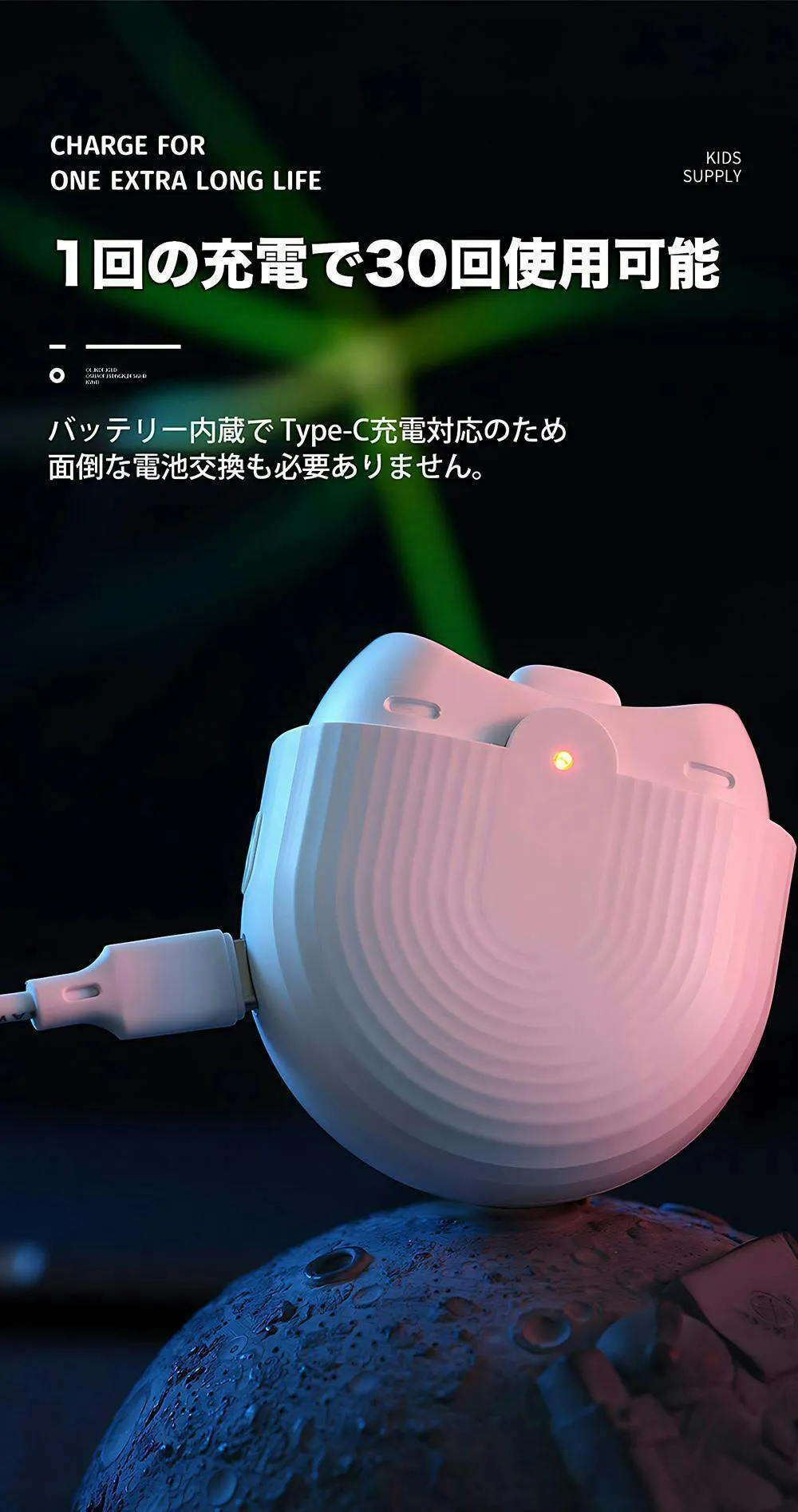 Type-C充電対応のため、モバイルバッテリーなどがどこでも充電できます。