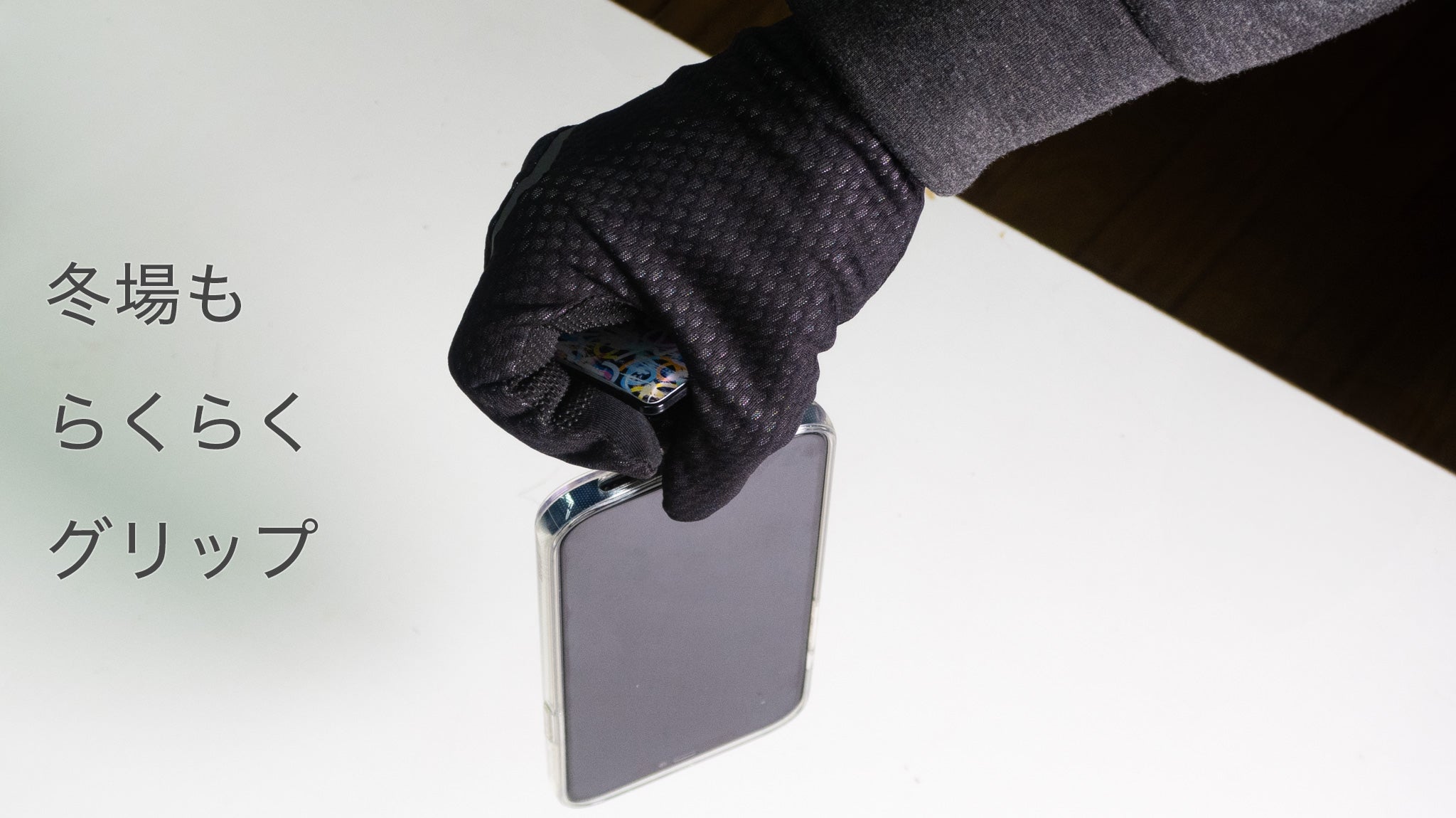 ゲームや自撮りなどの横持ちが必要なシーンでも、安心して持つことが可能です。(※画像は前回バージョン)