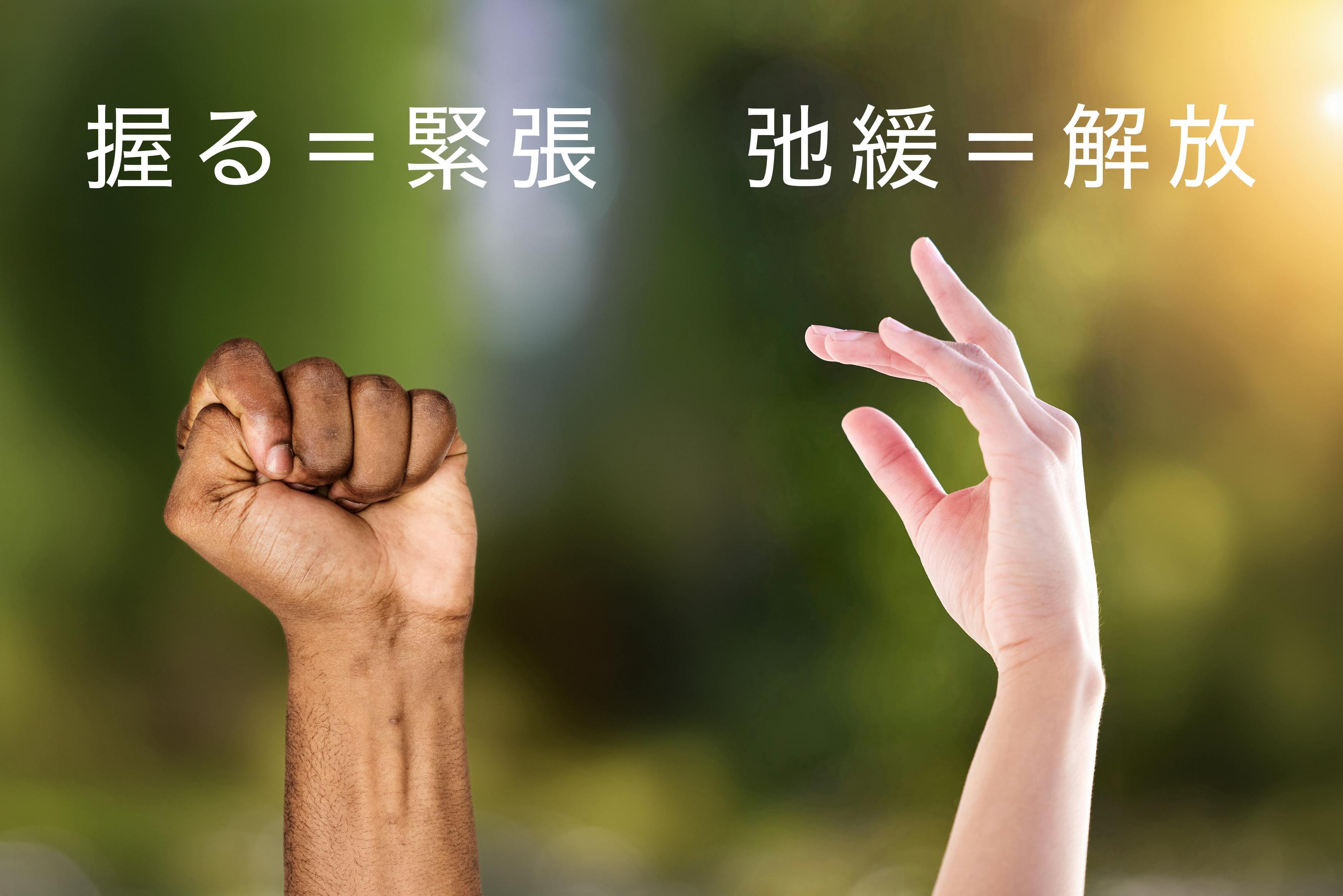 人は手をグッと握ると緊張する方向に力が入ります。一方、弛緩した状態だと緊張が解放されるため、無駄な力が入らなくなります。