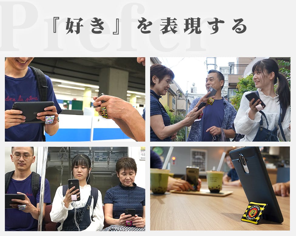 また、従来のスタンドの問題点は、しばらく使っているとヘタレて倒れてしまうこと。SYANTOなら特許取得済みの技術によりどれだけ使ってもヘタレないため、スマホ使用中に倒れません。