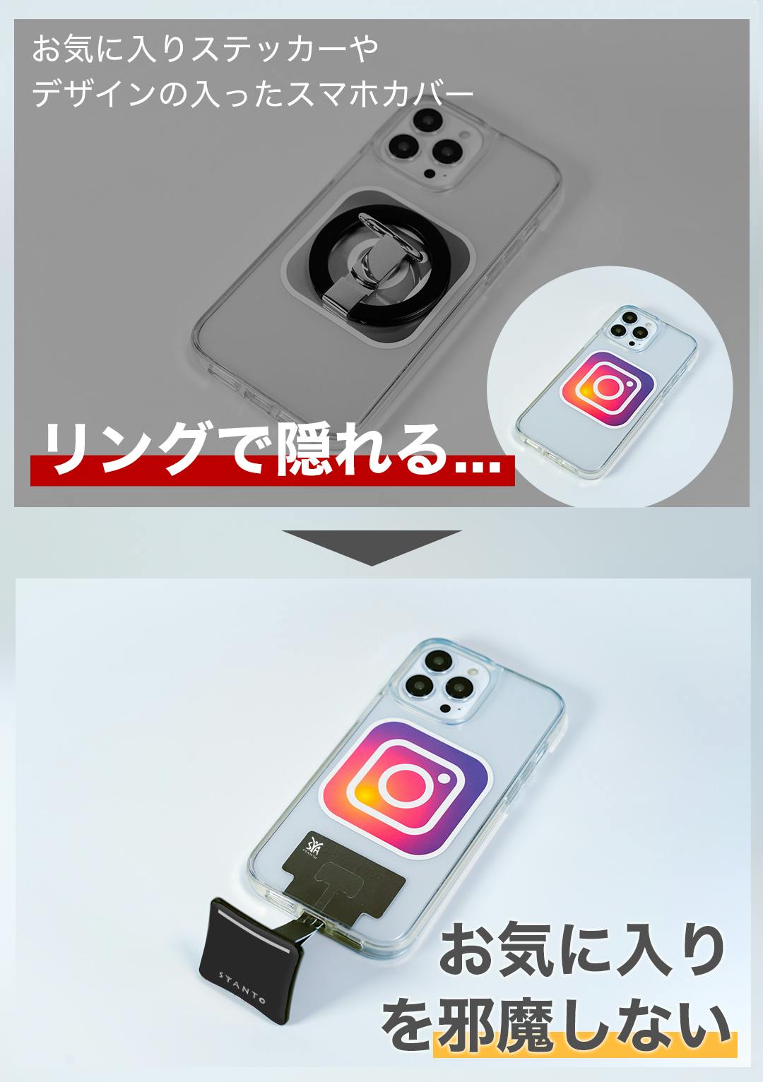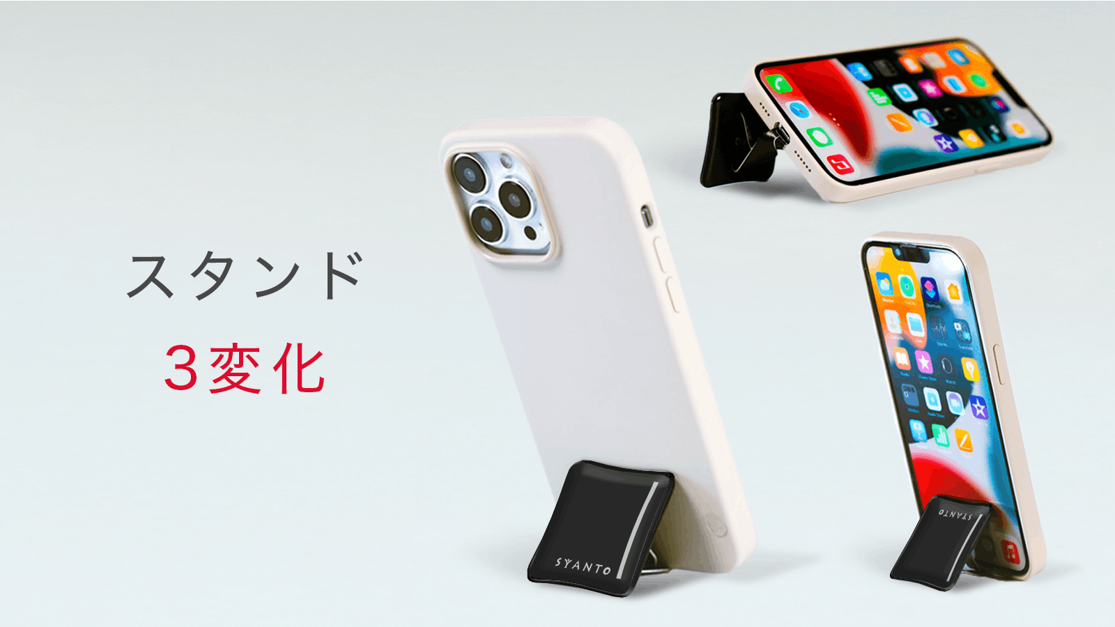 従来のスマホスタンドは、スタンド利用する時にリングを毎回変形させるのが地味にストレス。SYANTOは片手でポンと置くだけで自然とスタンドとして自立するため、片手が塞がっている時も一瞬の操作で簡単です。