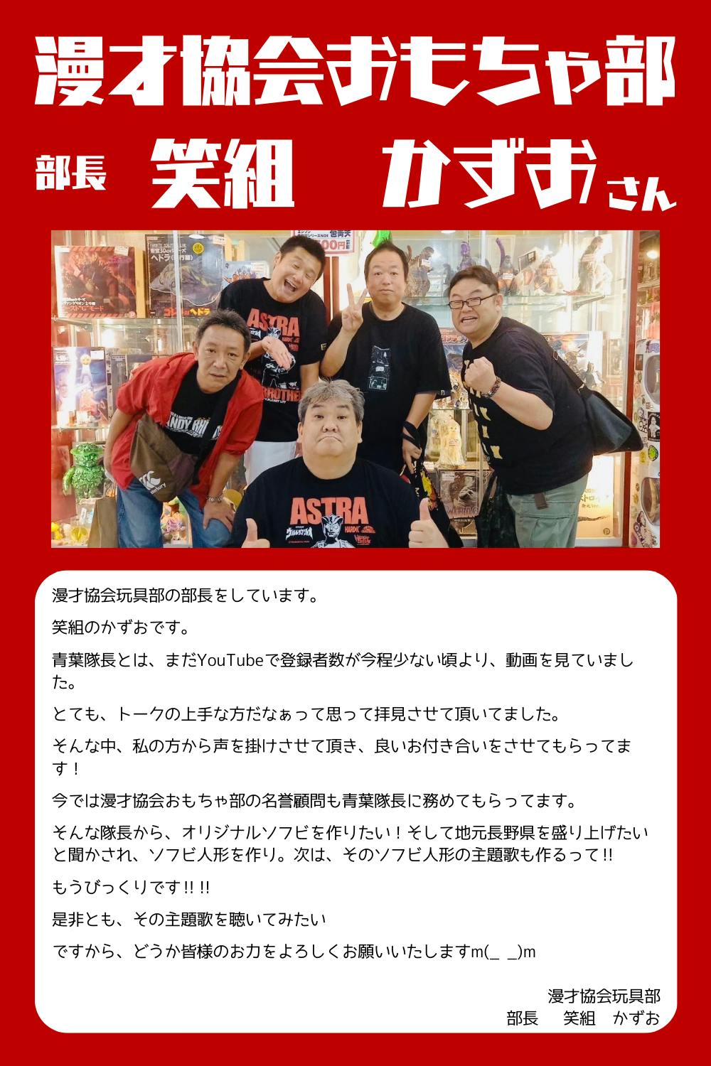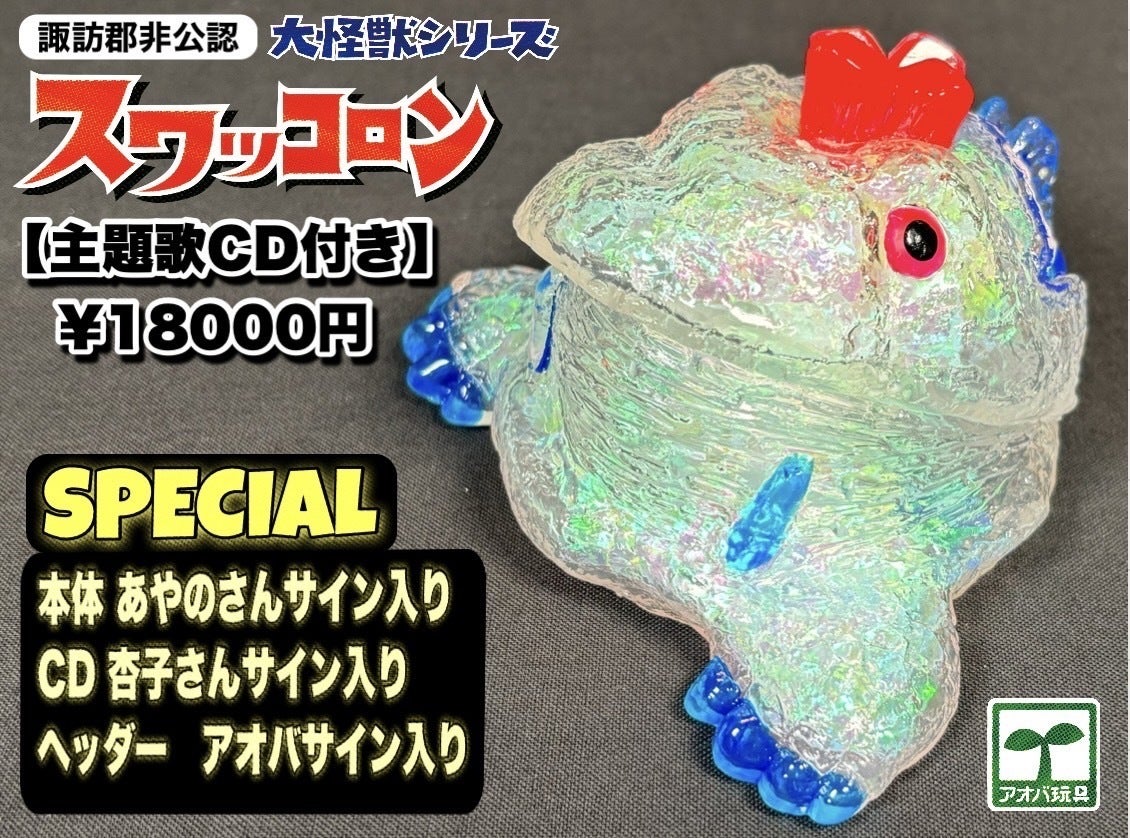 チャンネル内では、ソフトビニール人形(以下ソフビ)や昭和レトロ玩具などの紹介などに加え、長野県諏訪郡を舞台にした地域密着型のコンテンツ作りにも力を入れています。昨年、地元長野県の諏訪湖をモチーフとしたソフビ『諏訪郡非公認大怪獣スワッコロン』を作りました。
