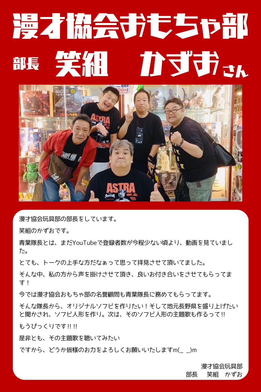 私は、スワッコロンの生みの親として大切に成長させて大きく育てて行きたいと思っています。その新たな一歩として主題歌プロジェクトがあります。