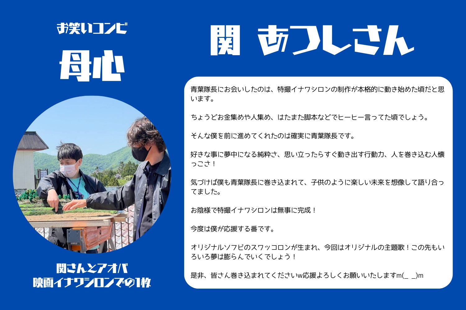はじめまして、おいかわあやのです。私は「80〜90年代のときめきをもう一度」というテーマで音楽活動をしています。今回スワッコロンのテーマ曲を歌わせていただくことになり、大変嬉しく思っております。青春秘密基地を盛り上げるお手伝いができたらと思っておりますので、ご支援のほど宜しくお願いします。