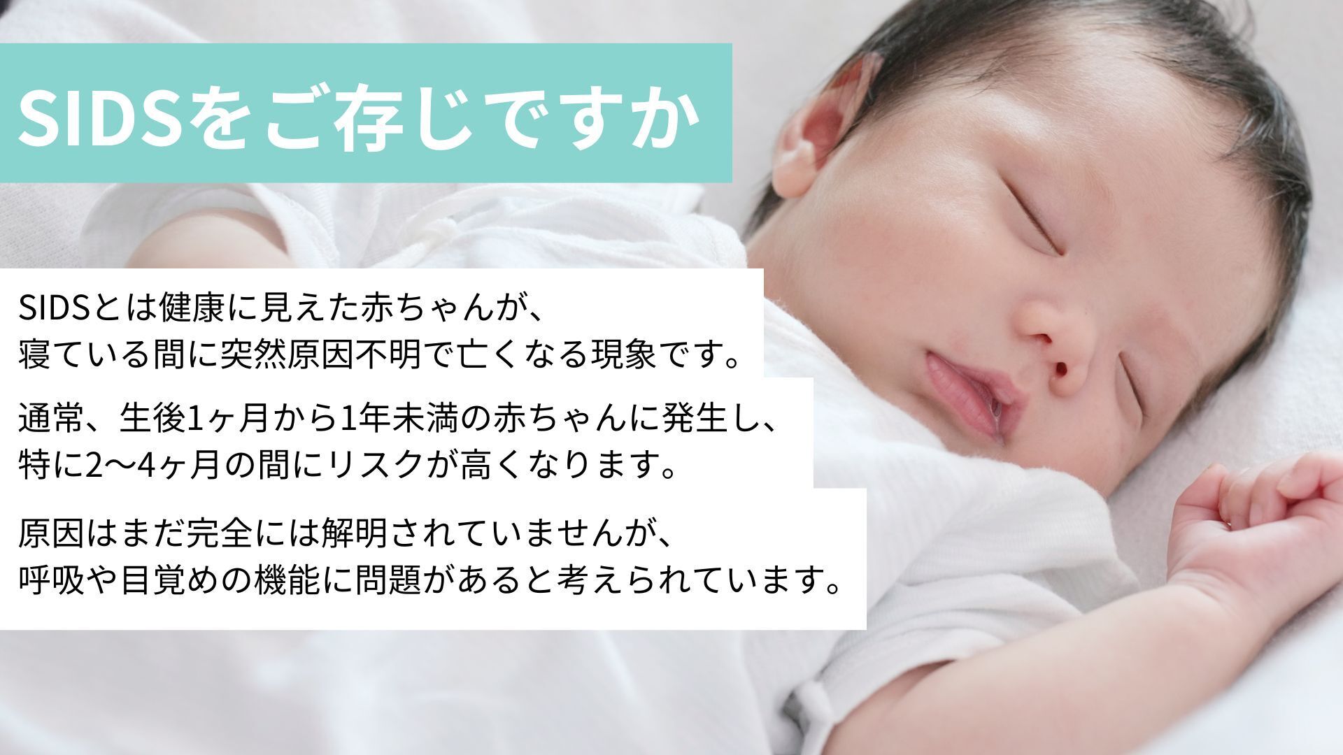 皆さん、「SIDS(乳幼児突然死症候群)」という言葉を聞いたことはありますか?