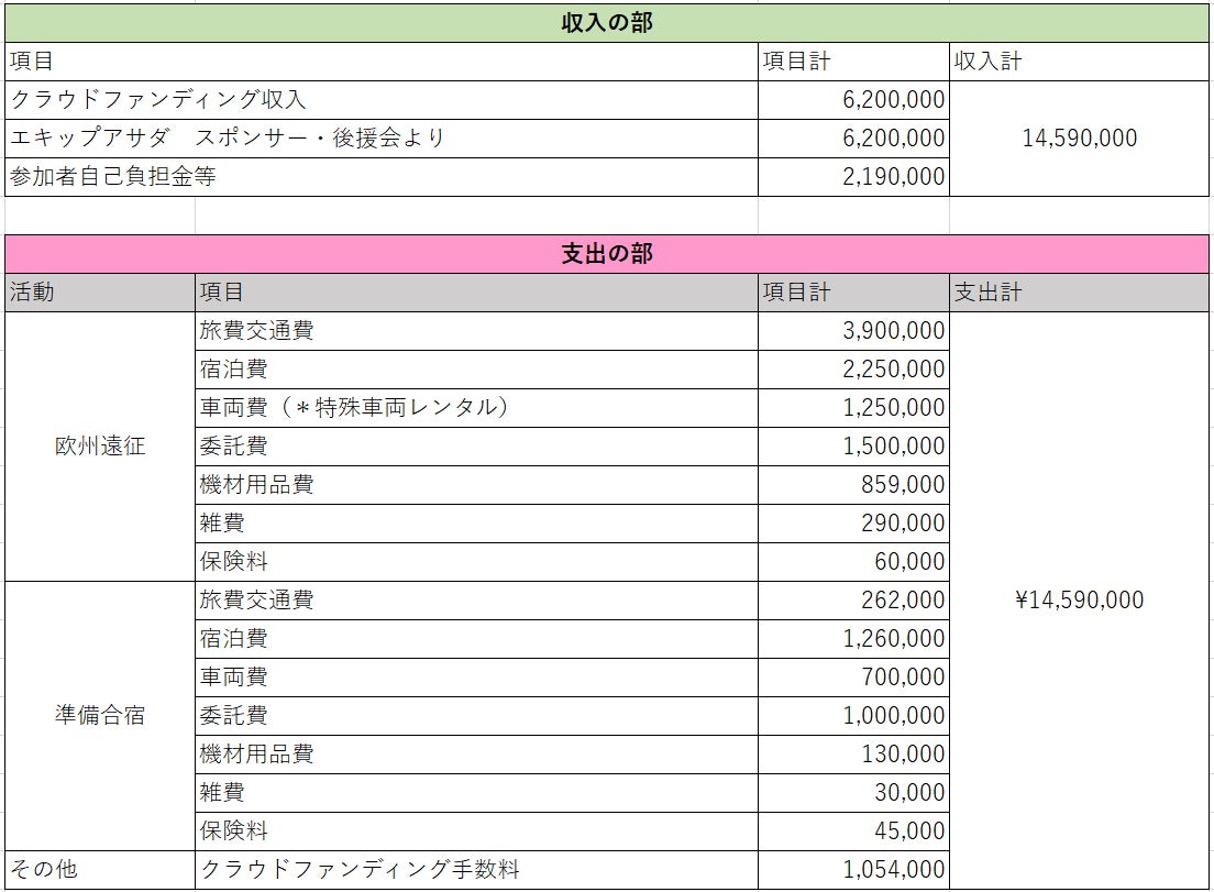 ・その資金を2024年8月にフランスで開催されるロードレース大会に出場する男子選手、スタッフの準備費用、及びCAMPFIRE様向け手数料に充当致します。