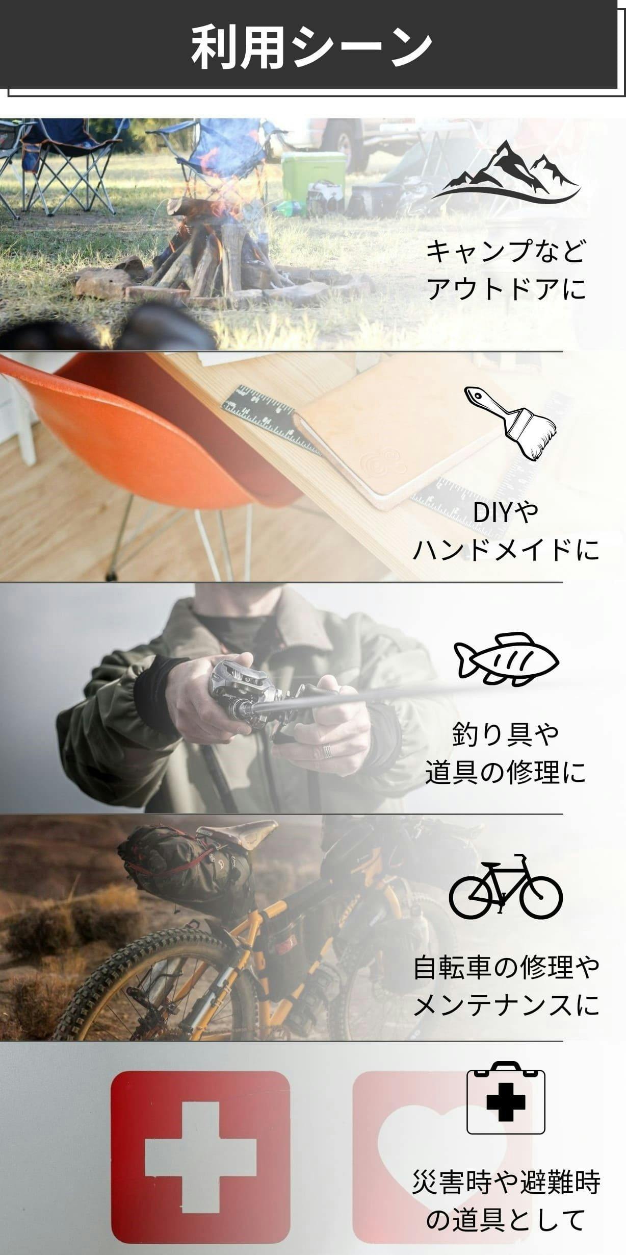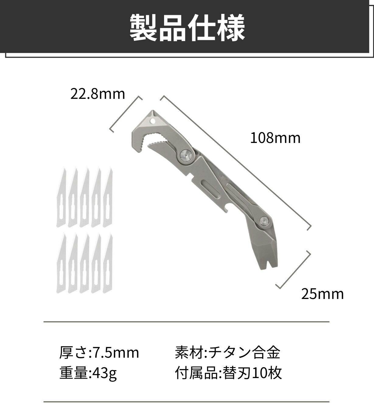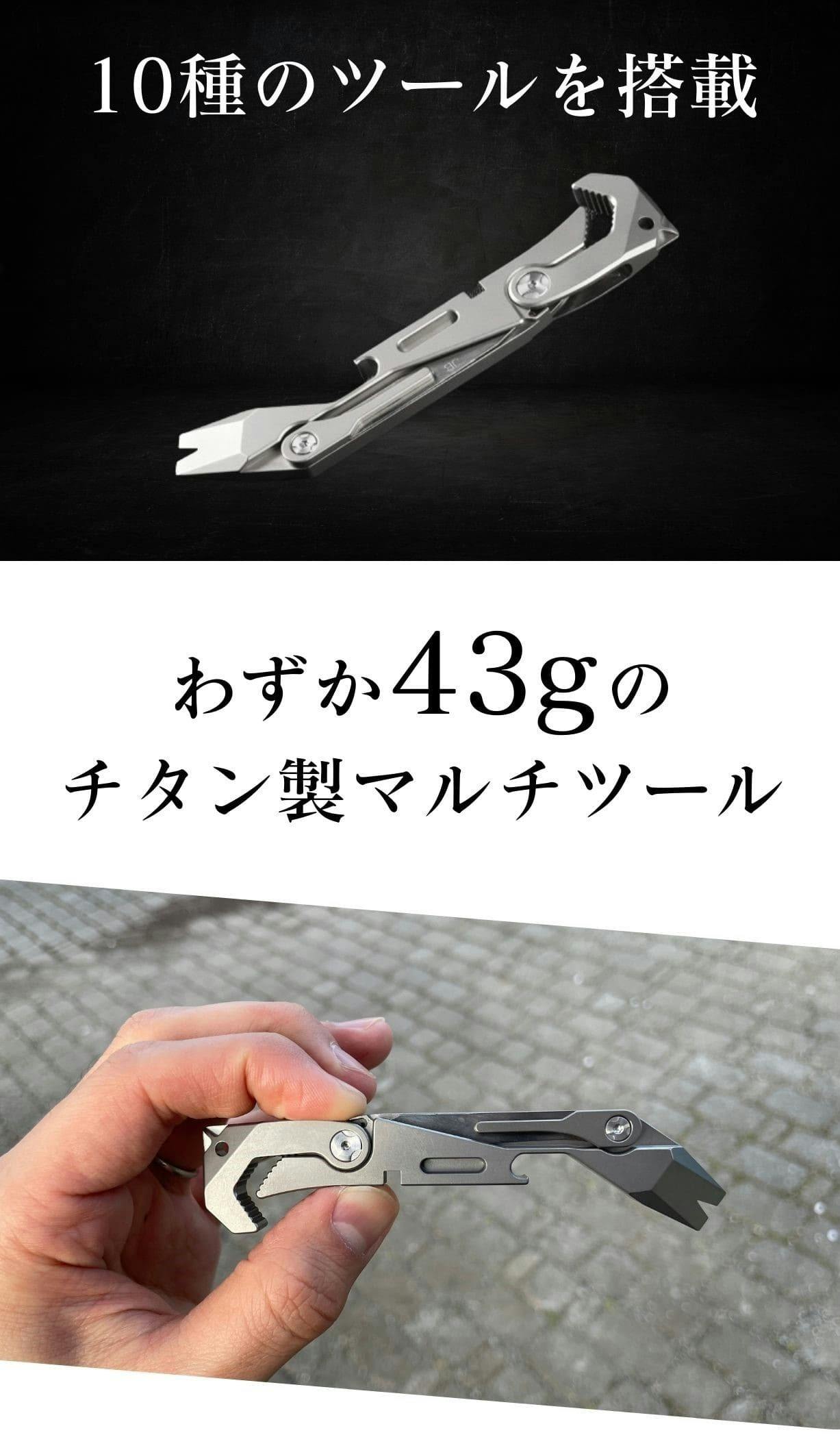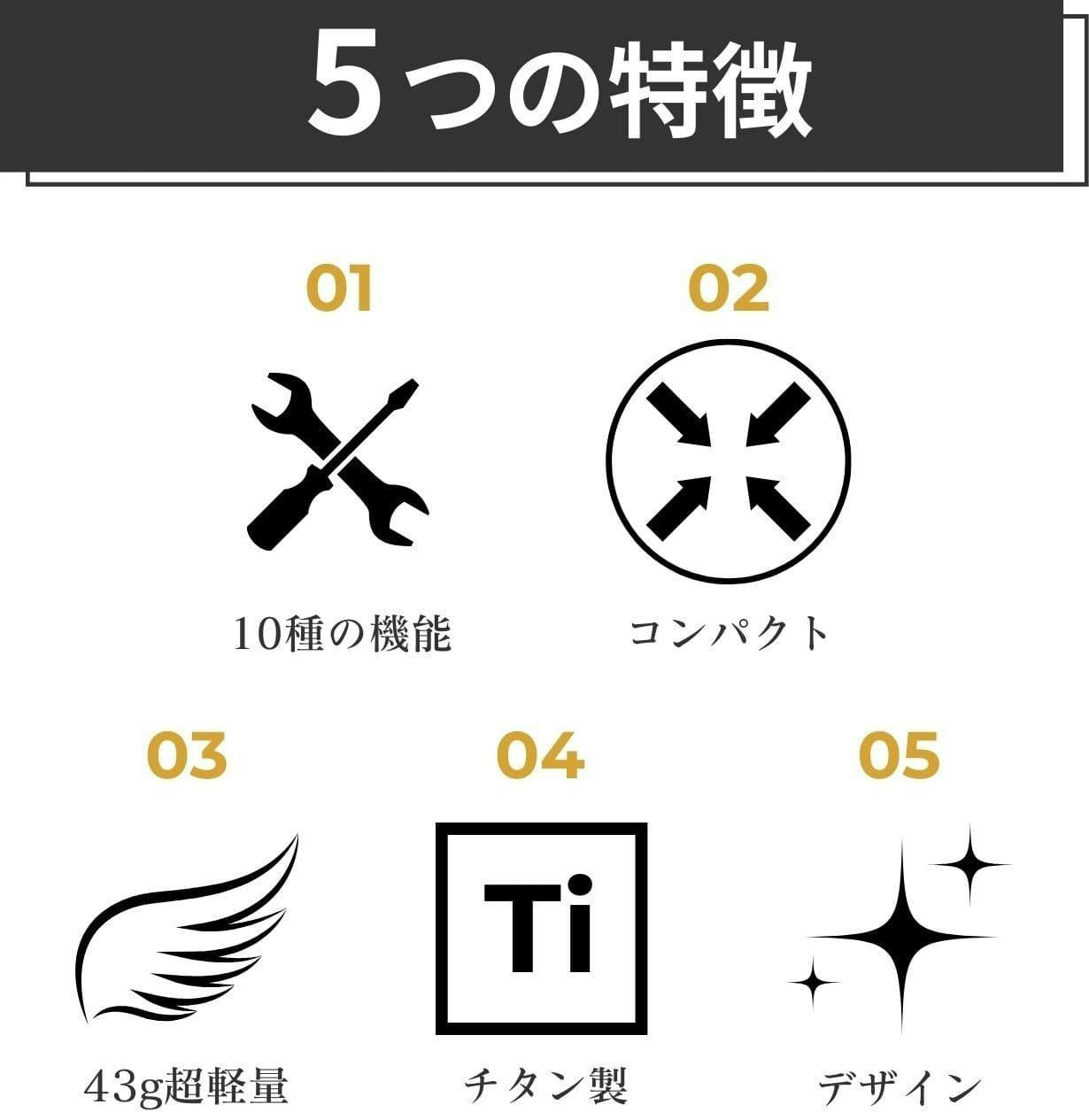 チタン製バール型マルチツールは、そのスタイリッシュなフォルムに10もの機能を搭載した、とても便利なマルチツールです。