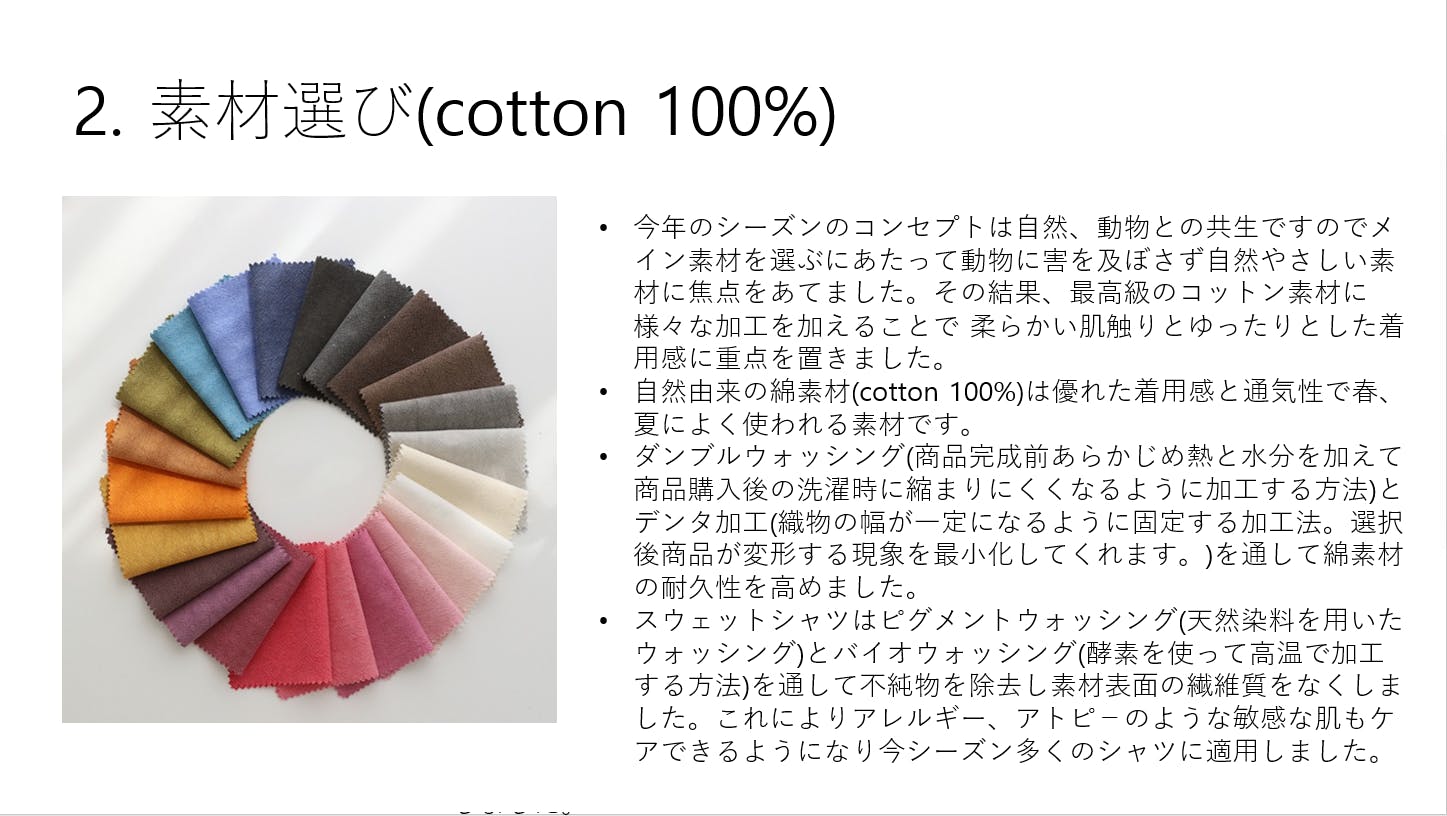 2023年シーズンは動物に害を及ばさない自然な素材で作られました。最高級100%コットンを使い、柔らかい肌触りとゆったりとした着用感に重点を置いています。