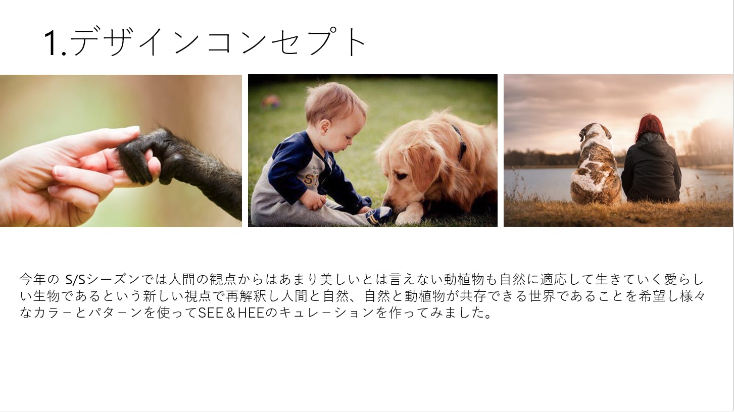 SEE&HEEは「人間と自然と動植物が共存できる世界に少しでも貢献できるブランド」を目指し、韓国人デザイナー2人で立ち上げられました。一見、動植物をモチーフにするのは独創的に感じるかもしれませんが、彼らの思いは「自然に適応していく愛らしい生命体という新しい視点から再解釈し多様なカラーとパターンを通してブランドの世界観を伝えたい」というものです。差別化された新しい価値を提供するというのがSEE&HEEの独特のキュレーションです。