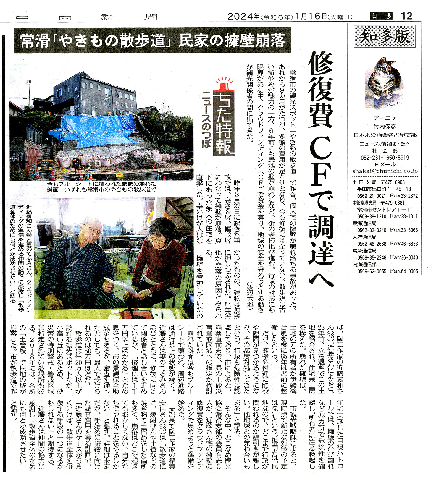 2023年3月に雨の影響で、高台にある工房のコンクリート擁壁が崩れ落ちてしまいました。