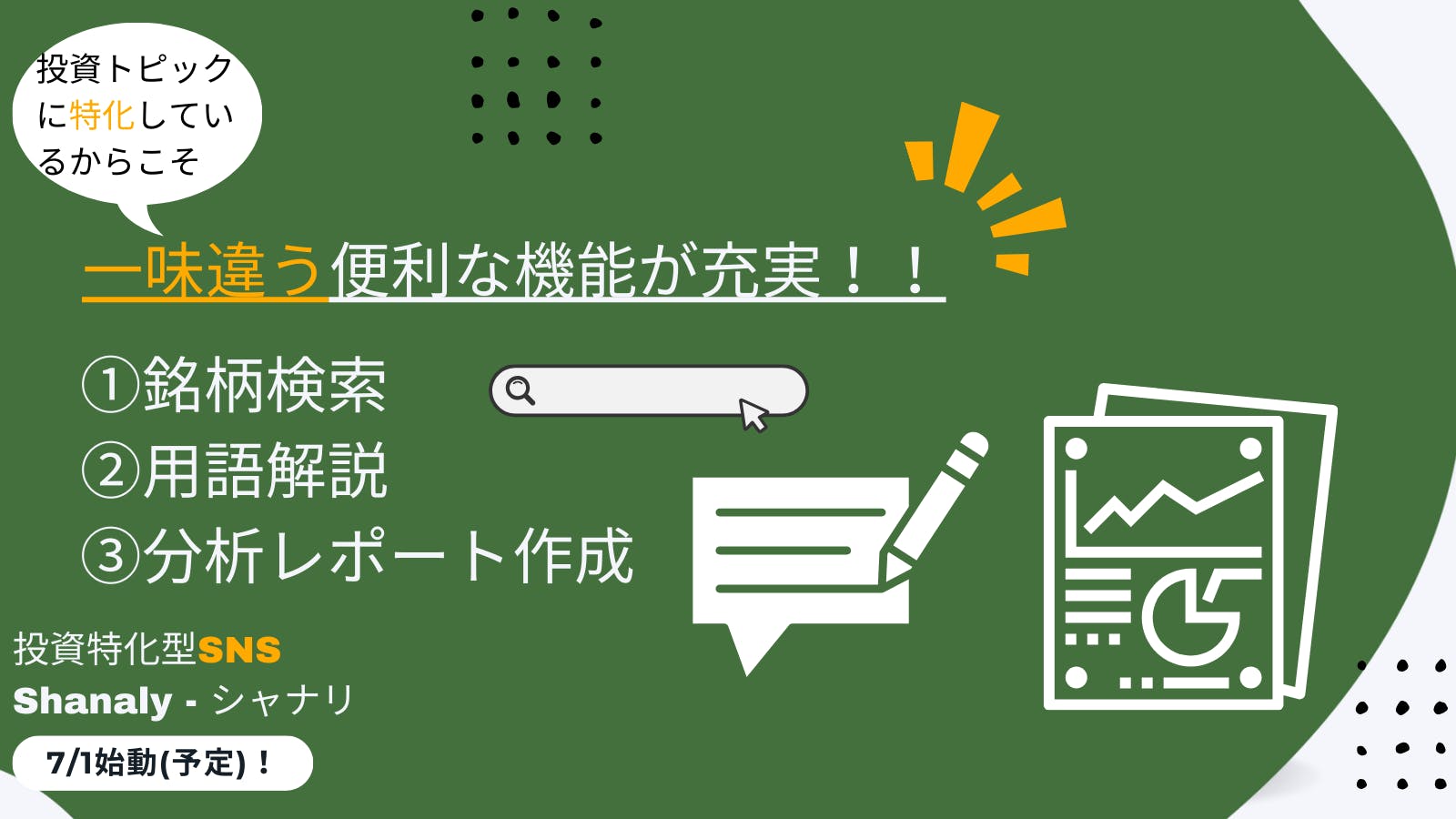 みなさま、初めまして。投資特化型SNS[Shanaly(シャナリ)]開発チームです!