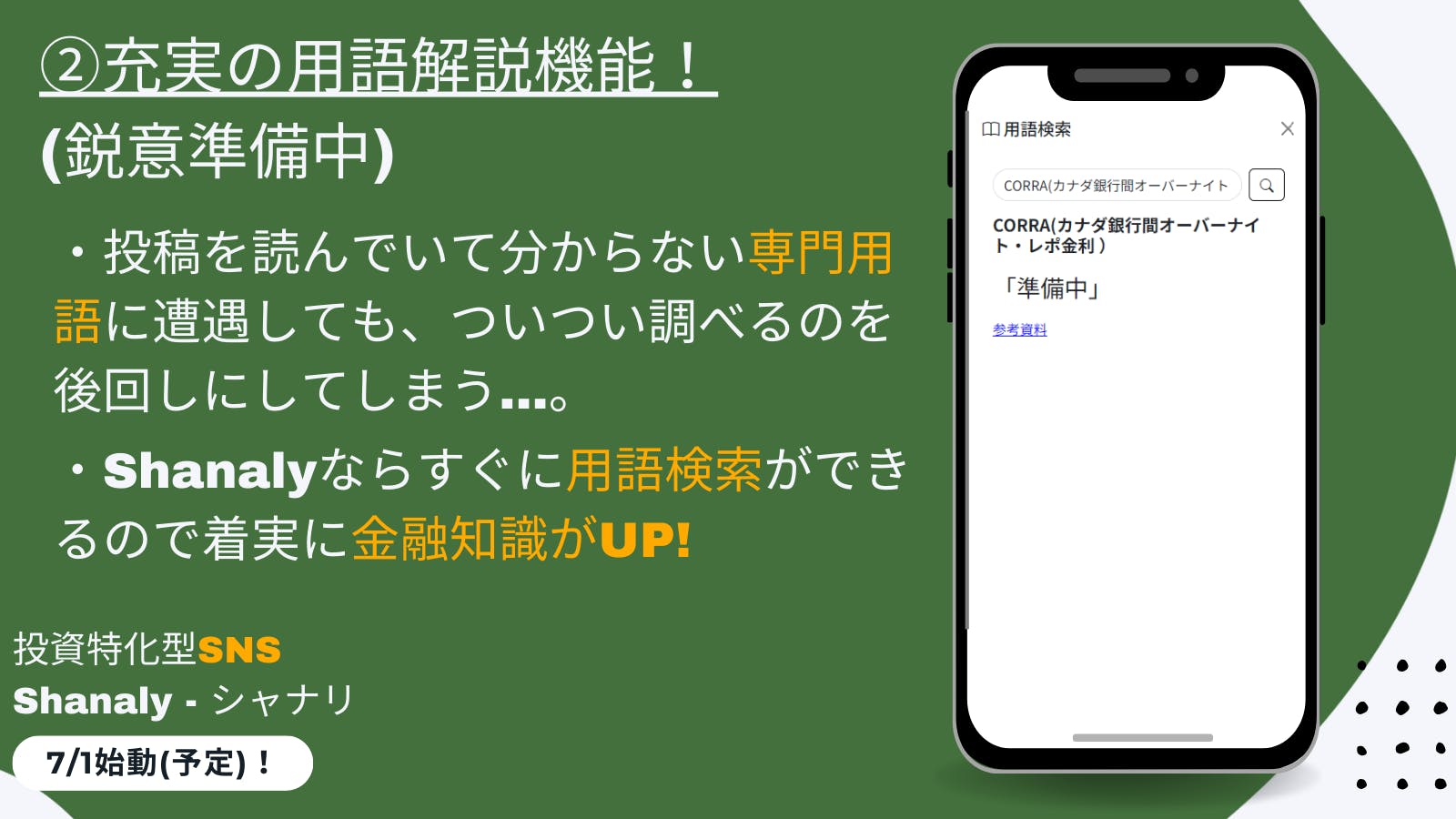 私たちは、新しい投資特化型SNSであるShanaly(シャナリ)を通じて、一人一人が自身の金融リテラシーを向上させ、より安心した将来を過ごせる社会を実現させることを目指しています。Shanalyがリリースされた際には、ぜひお試しいただき周囲の方と一緒に楽しく投資のスキルを向上していただければ、開発チーム一同大変嬉しく思います。
