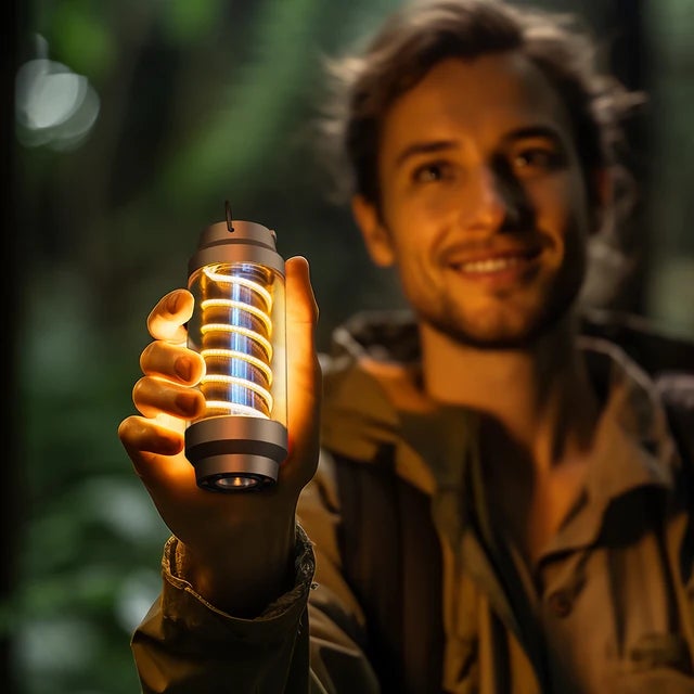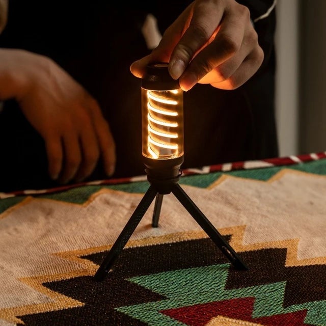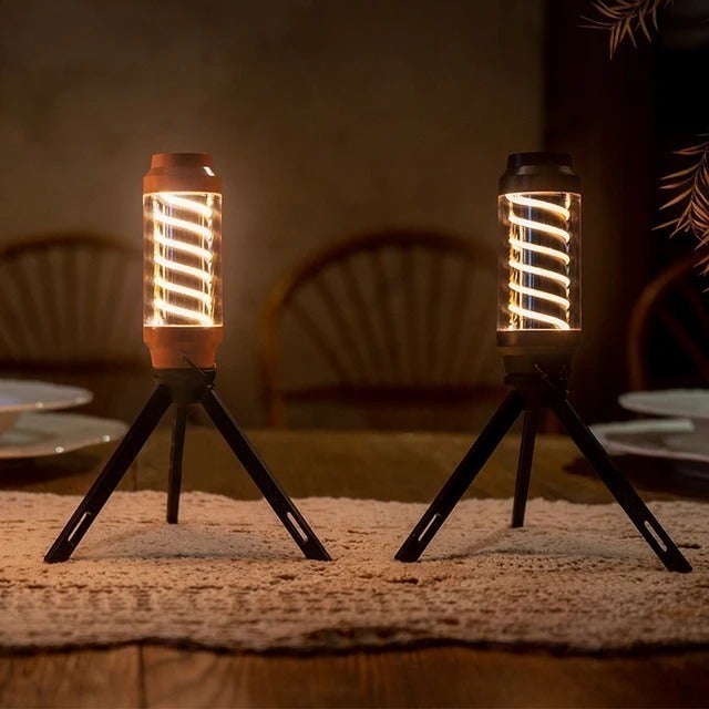 ●柔らかい光を放つ螺旋状ライト。自然の美しさを邪魔しない光はキャンプなどに最適!