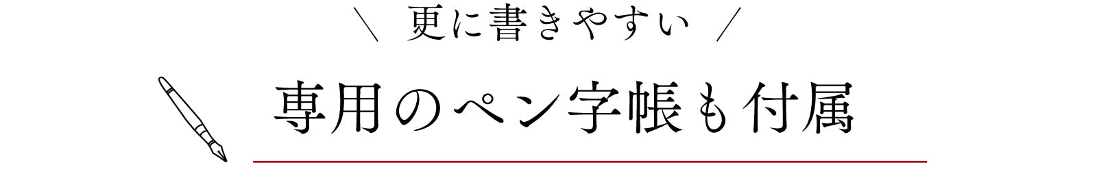 あらゆるペン(ボールペン、シャーペン、万年筆等)でスムーズに書ける文字の大きさと太さを追求。すべての文字の試し書きも実施し、ユーザー体験に基づいた商品作りを実現しました。また、書き味を最優先に選定した紙質で製本。