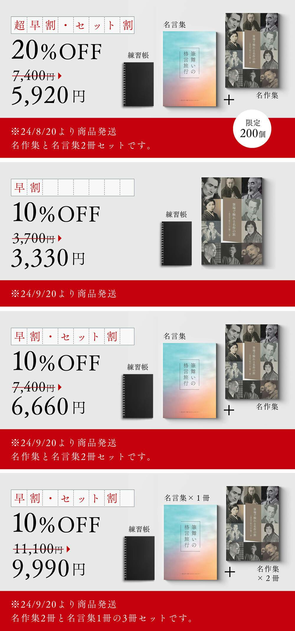 夏目漱石や芥川龍之介などの著名な作家たちがつづった心に響く一節を、達筆な書道家たちが得意の書体を用いて表現。その美文字を電子データ化し製本した練習帳です。