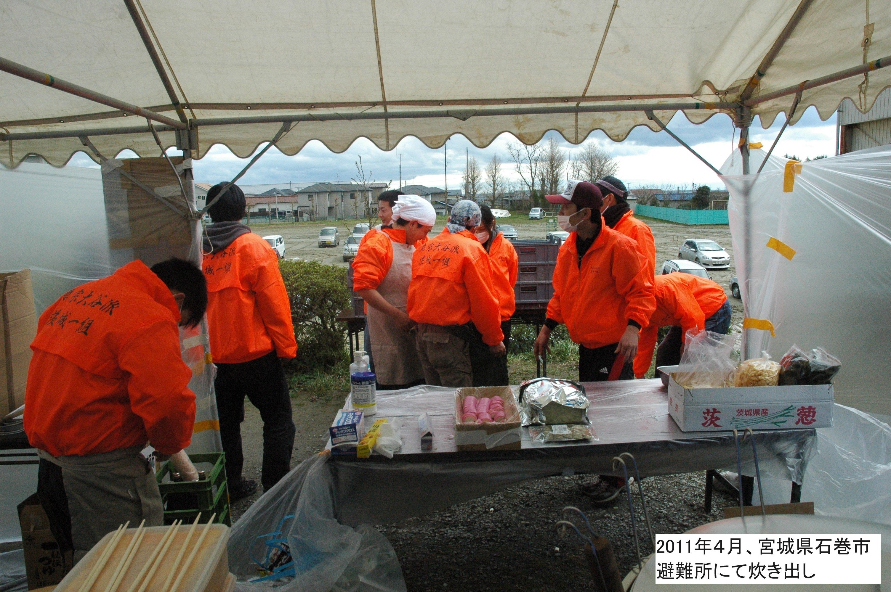 2011年4月、宮城県石巻市雄勝町水浜の避難所での炊き出し・被災者の声「忘れないでください」