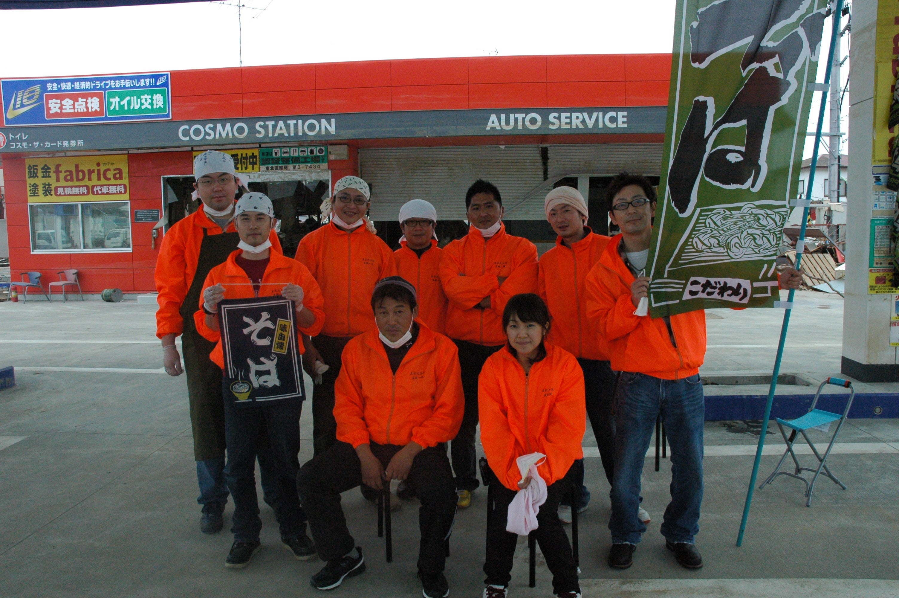 避難所では、野菜不足ということもありけんちん汁のそば・うどんを炊き出していましたが、その後仮設には子供さんも多かった事もあり、ラーメンへ切り替えました。それ以降ずっとラーメンです。