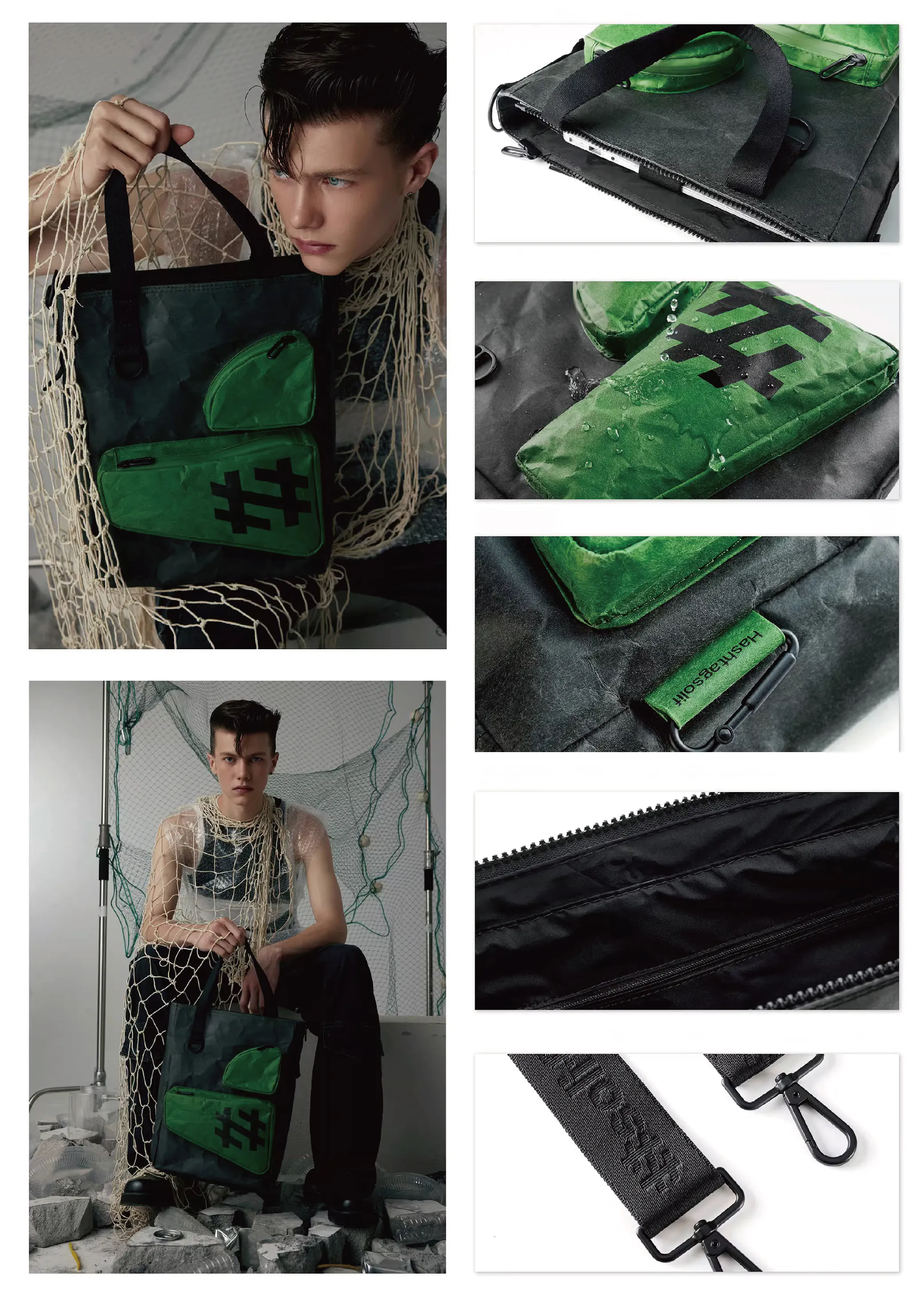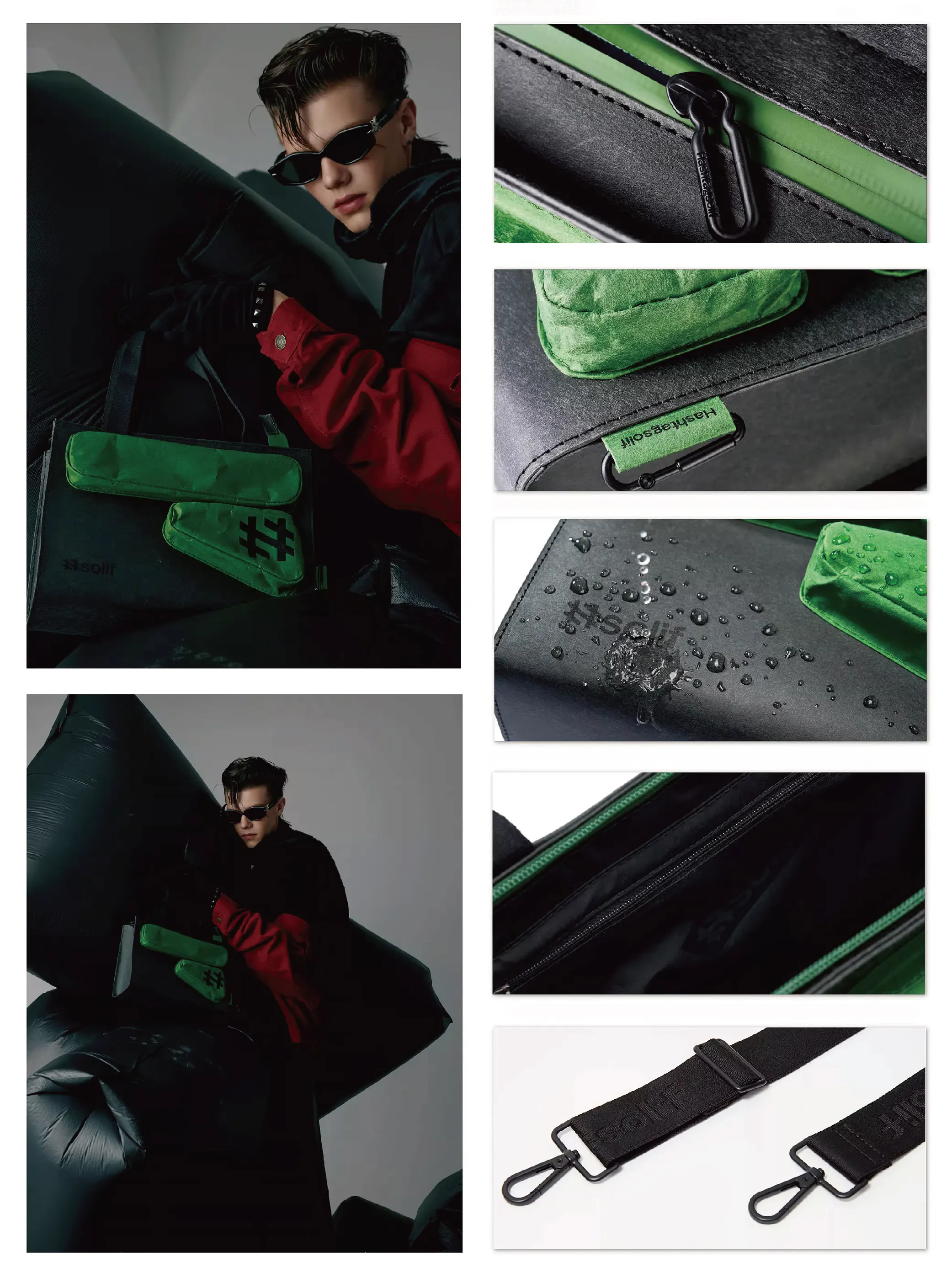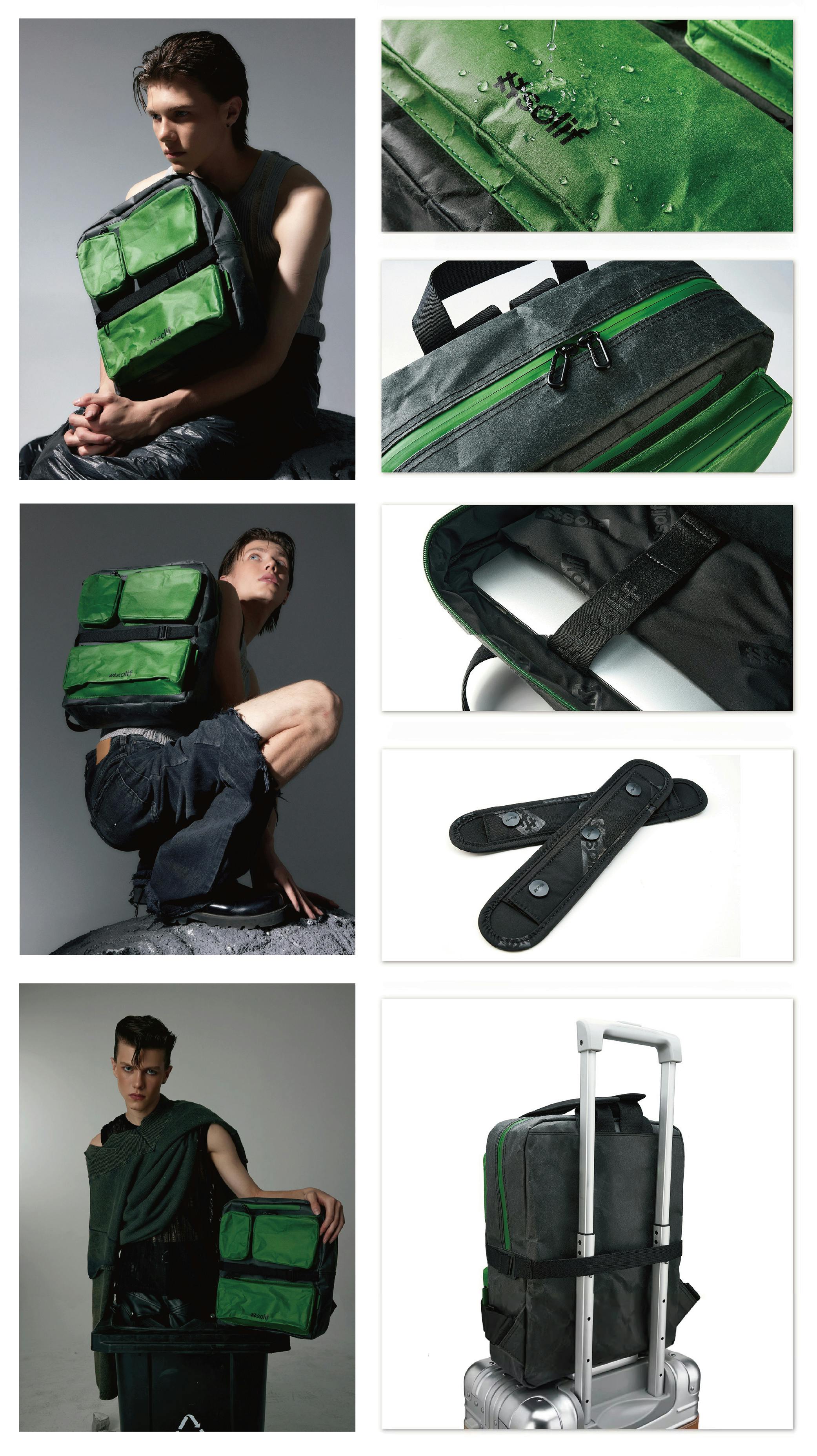 鮮やかなグリーンの差し色がポイントのこのバッグで、スタイリッシュにファッションを楽しみながら、サステイナブルなライフスタイルを。